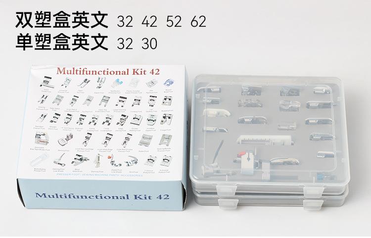 1、Pie prensatelas con regla 2、Pie prensatelas de uso general 3、Pie prensatelas de punta abierta 4、Pie prensatelas para cremallera 5、Pie prensatelas para coser botones 6、Pie prensatelas de plástico para cremallera invisible 7、Pie prensatelas para puntada de satén (A9) 8、Pie prensatelas para abalorios 9、Pie prensatelas overlock 10、Pie prensatelas transparente para apliques 11、Pie prensatelas para dobladillo enrollado de 6 mm 12、Pie prensatelas antiadherente 13、Pie prensatelas transparente de punta abierta 14、Pie prensatelas de abertura ancha 15、Pie prensatelas para ribete 16、Pie prensatelas de 1/4 de pulgada para acolchado con puntada recta 17、Pie prensatelas para coser lentejuelas 18、Pie prensatelas estándar 19、Pie prensatelas central para puntada recta 20、Pie prensatelas de 1/4 de pulgada para acolchado con guía 21、Pie prensatelas overlock 22、Pie prensatelas para ribete de cinco cordones 23、Pie prensatelas para ribete de siete cordones 24、Pie prensatelas para unir piezas 25、Pie prensatelas para bies 26、Pie prensatelas para cremallera invisible 27、Pie prensatelas jacquard 28、Pie prensatelas ajustable para bies ancho 29、Pie prensatelas para fruncir telas finas 30、Pie prensatelas estrecho de 3 mm para dobladillo enrollado 31、Pie prensatelas ancho de 6 mm para dobladillo enrollado 32、Pie prensatelas de 3 mm para dobladillo enrollado 33、Pie prensatelas de rodillo para cuero, 34、Pie prensatelas para coser cuentas, 35、Pie prensatelas para ojales en cuatro pasos HB, 36、Pie prensatelas para zurcido y bordado, 37、Pie prensatelas para puntada de dobladillo invisible, 38、Pie prensatelas para acolchado y bordado a mano alzada, 39、Pie prensatelas ajustable de un solo lado, 40、Pie de arrastre para telas finas, 41、Pie prensatelas para pliegues anchos, 42、Pie prensatelas para pliegues estrechos