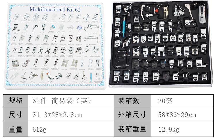 Juego de prensatelas de 62 piezas (simple, tapa dura)