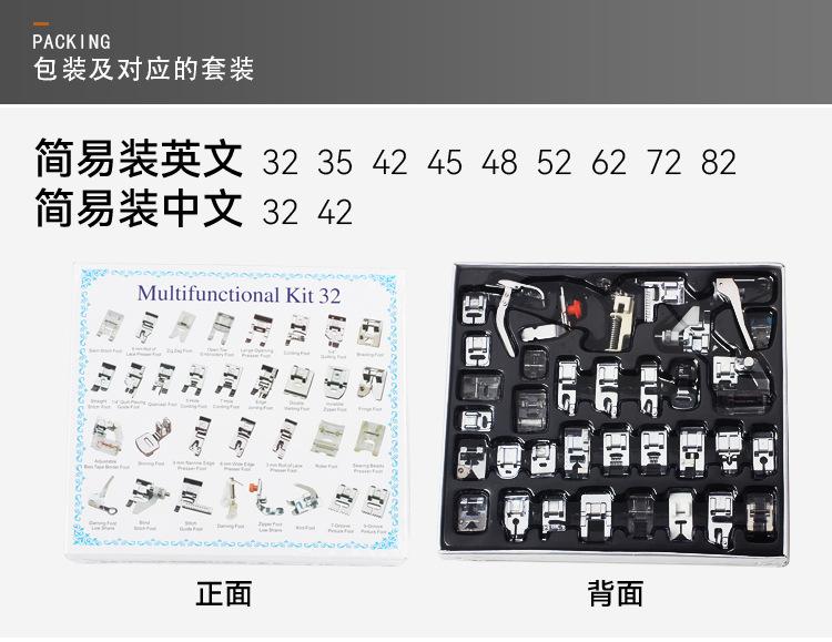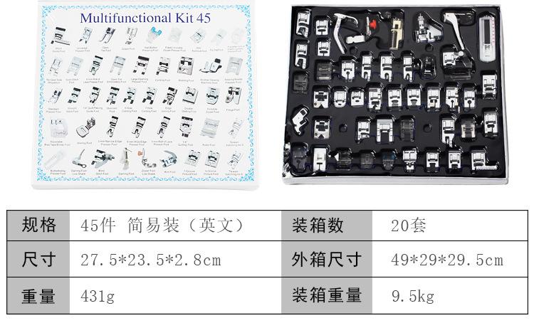 Nombre del producto: Juego Simple de 45 Piezas Versión en Inglés Pies Prensatelas