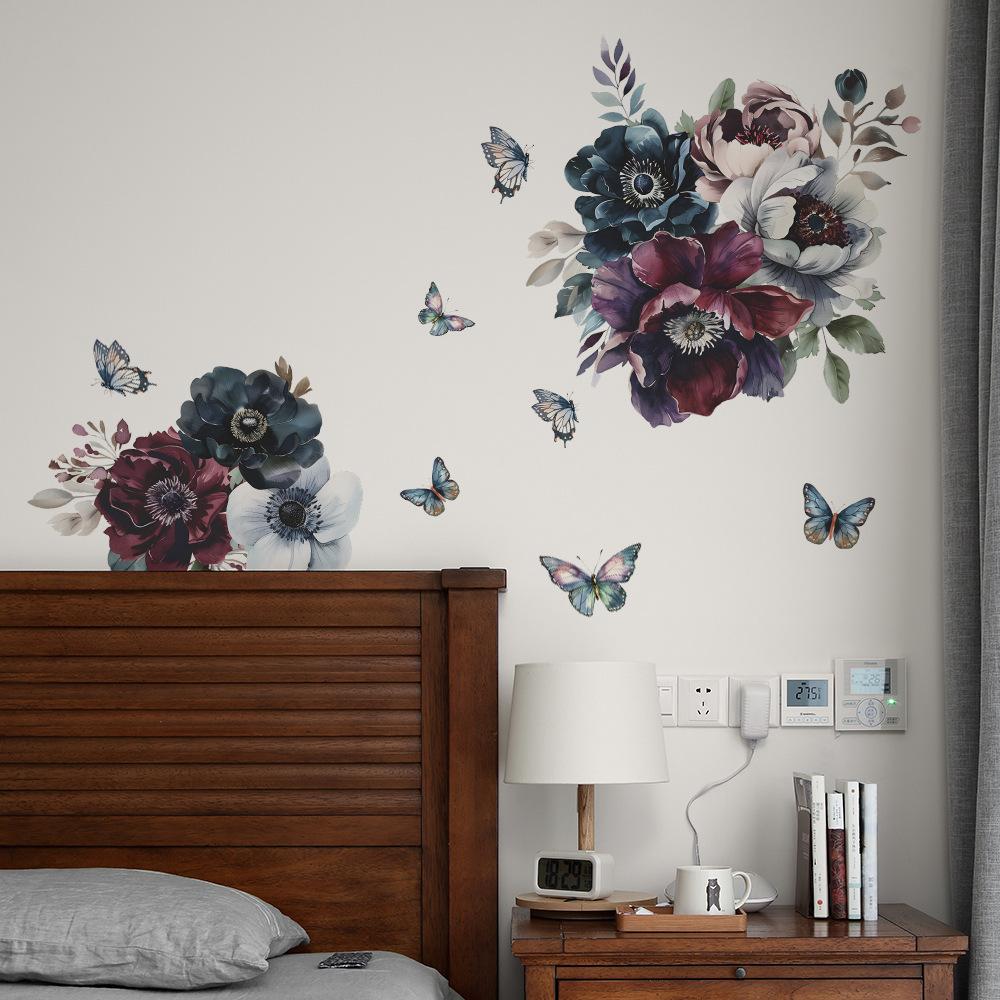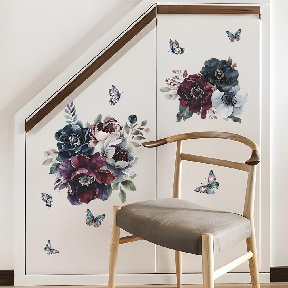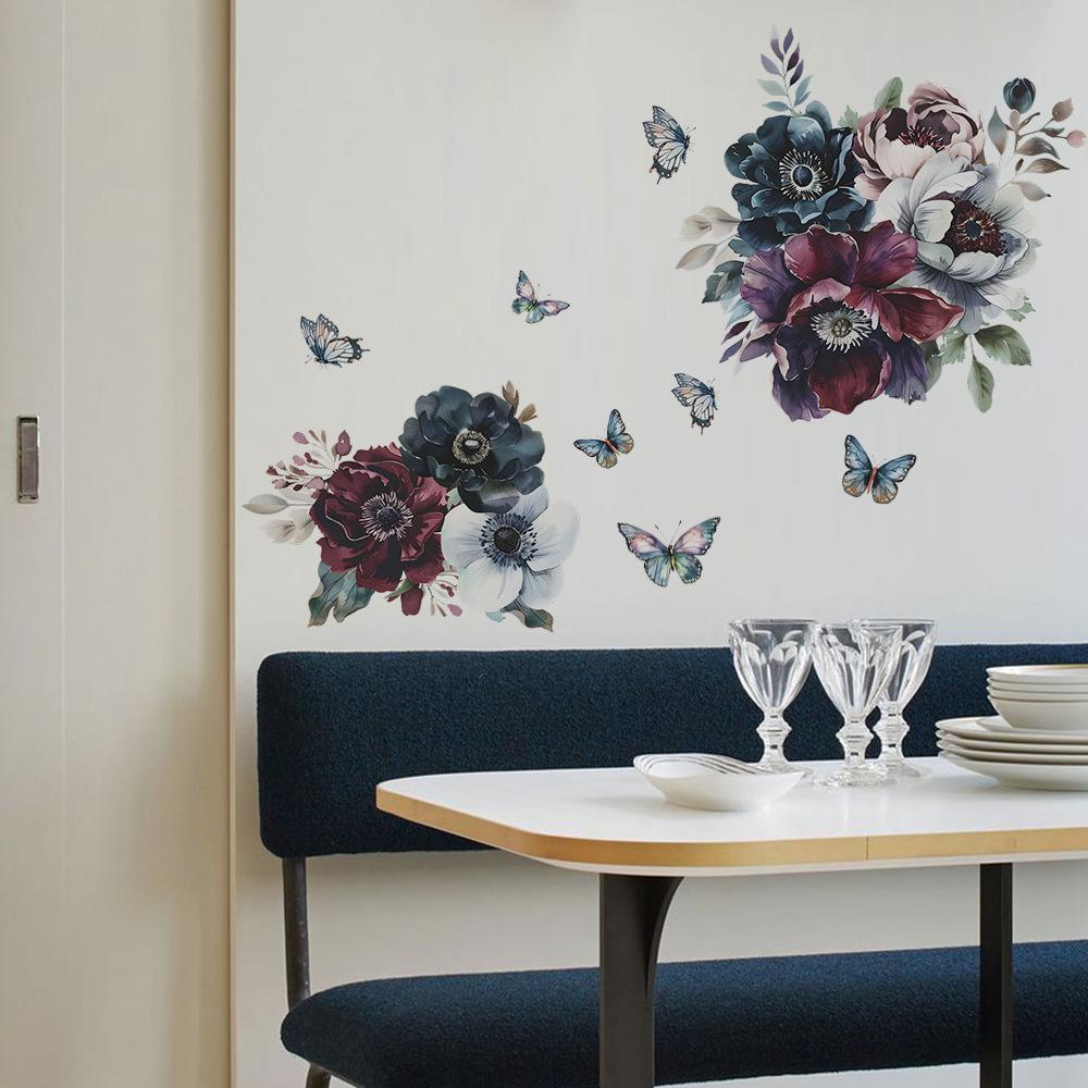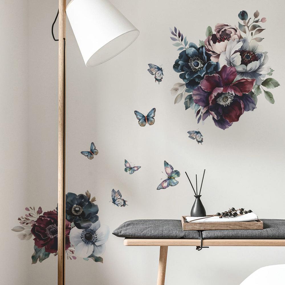 Comercio exterior creativo flores hojas mariposa dormitorio sala de estar dormitorio porche decoración del hogar pegatinas de pared autoadhesivas al por mayor