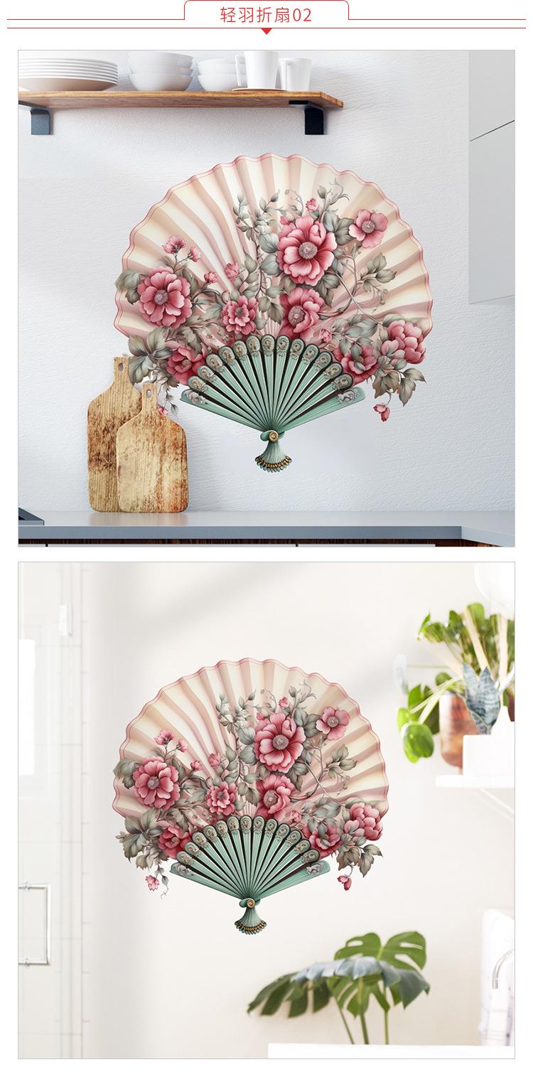 Pegatinas de pared con diseño de abanico plegable con forma de rosa para baño, pegatinas decorativas para inodoro, pegatinas de pared transfronterizas de gran venta.