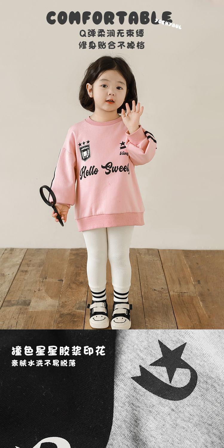 Wuri Bub Leggings ajustados a rayas de estrella de cinco puntas para niña, pantalones casuales acanalados lindos para niños de otoño