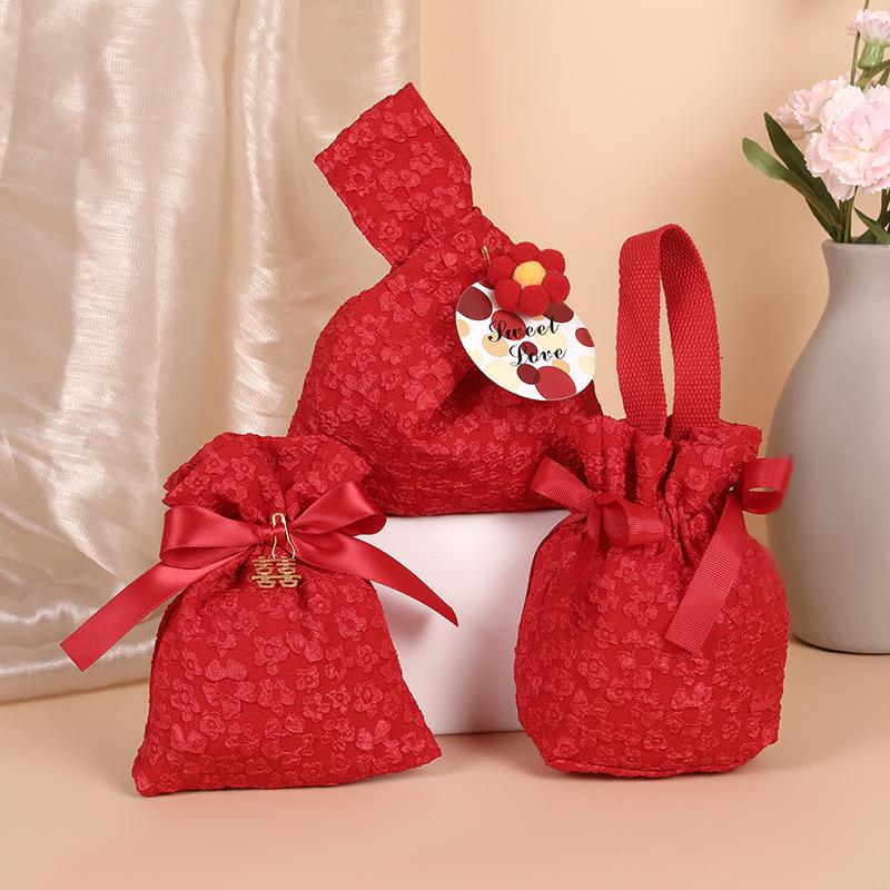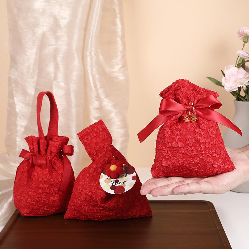 Nueva bolsa de dulces de boda de estilo chino, bolsa de tela para regalo de boda, bolsa de dulces, caja de dulces, bolso de mano plegable, pequeño libro rojo gratis