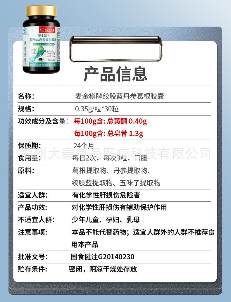 Cápsulas de Gynostemma, Salvia y Pueraria Marca Beijing Tongrentang Maijinzun Especiales para Nutrir y Proteger el Hígado Alimento Saludable al por Mayor