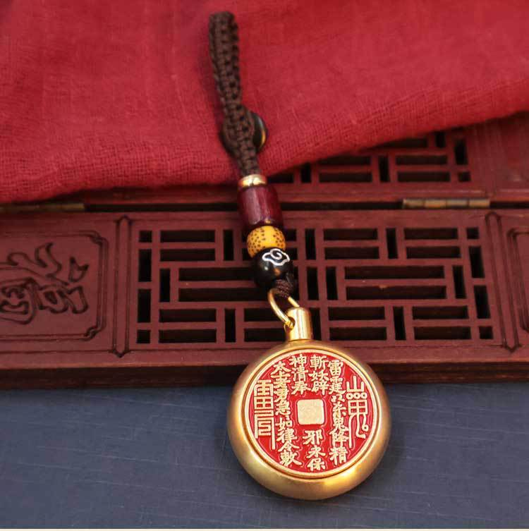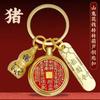 Llavero con colgante de calabaza cinabrio del zodiaco con giro de dinero fantasma de montaña de latón, Pixiu de transferencia de la suerte