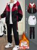 Otoño e Invierno 2025 Marca de Moda Americana Sudadera con Capucha Color Sólido con Forro Polar Engrosado Traje Juvenil para Hombre Holgado Casual
