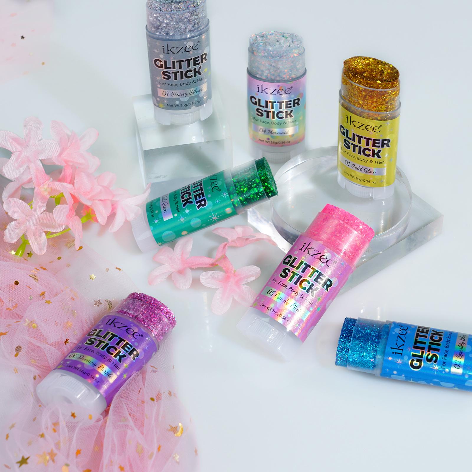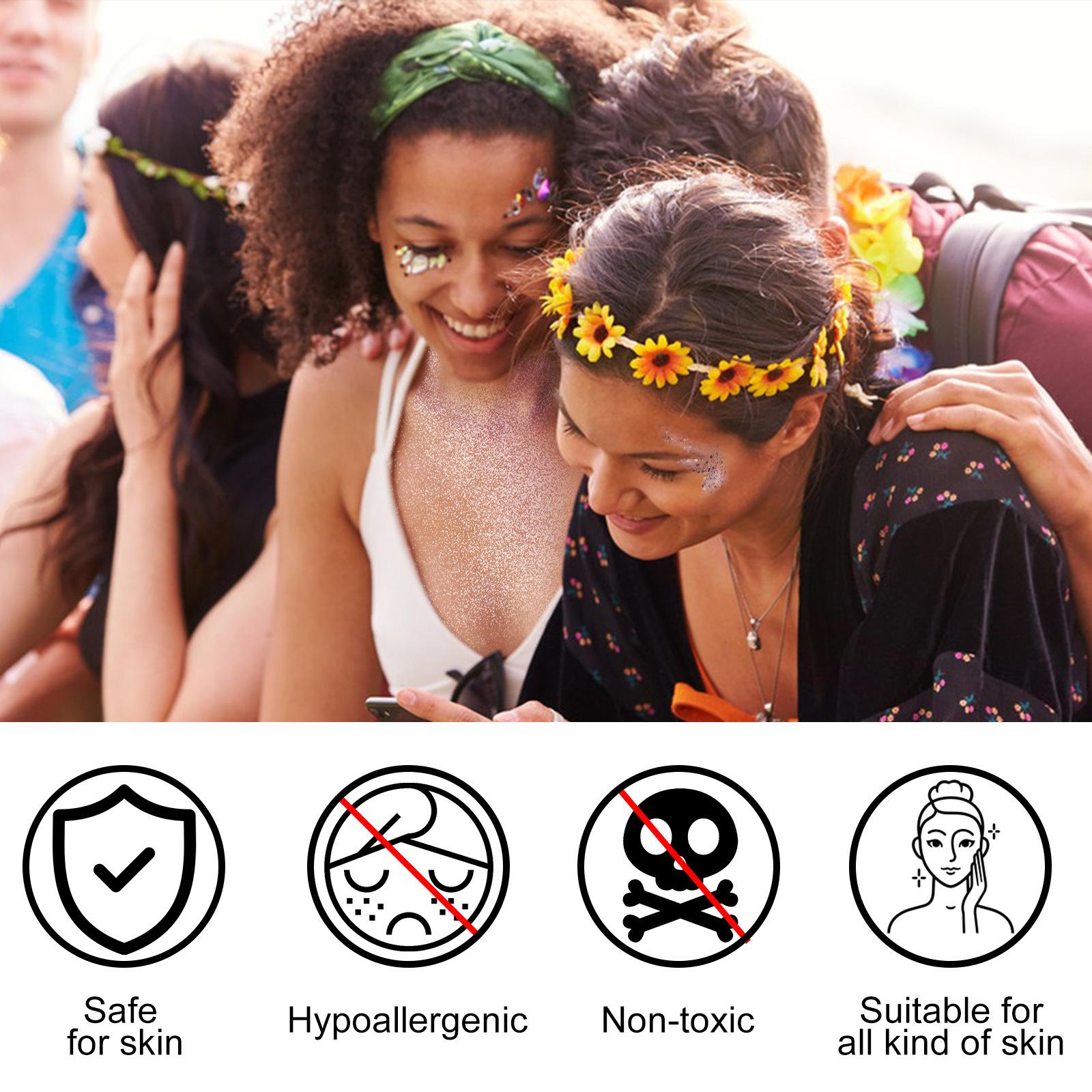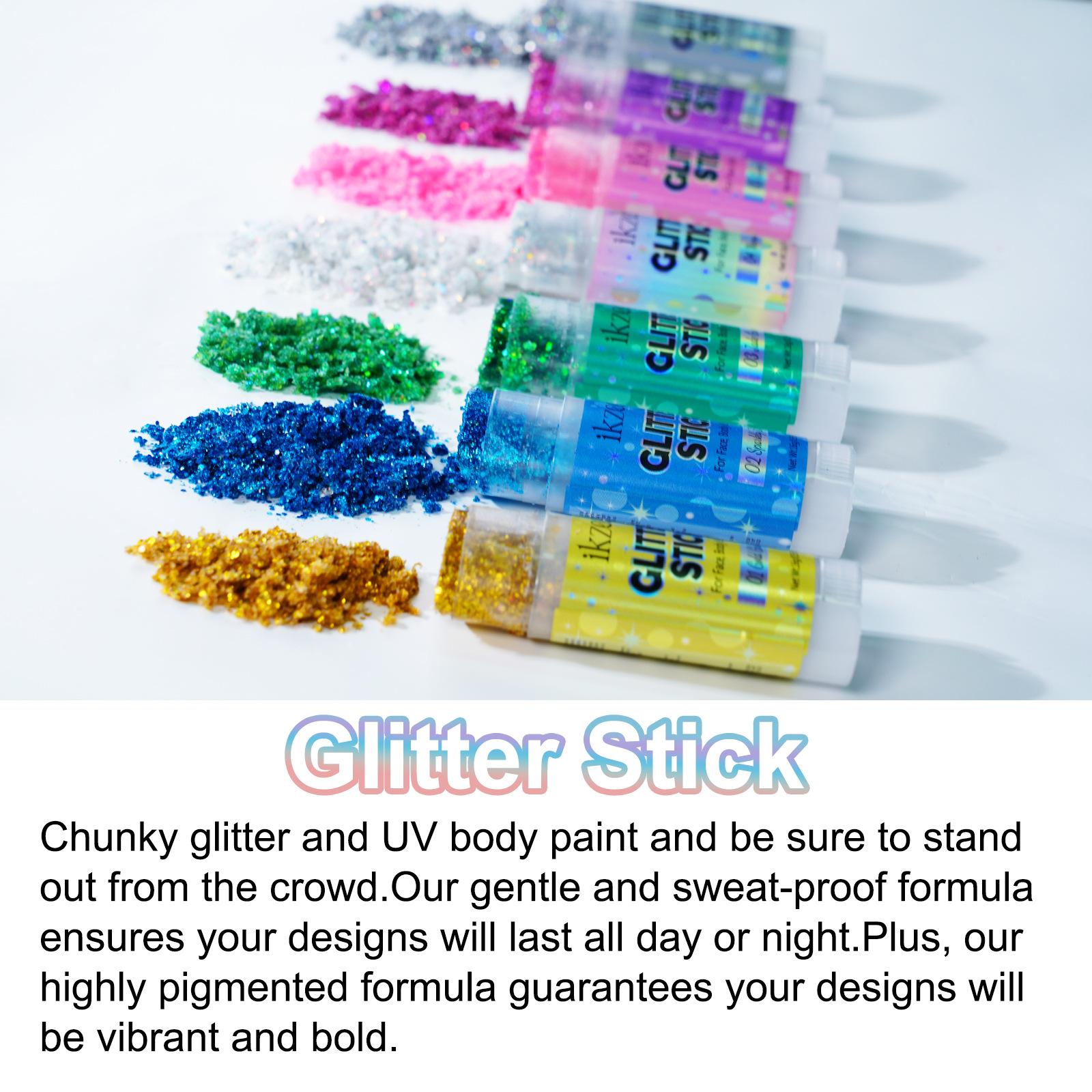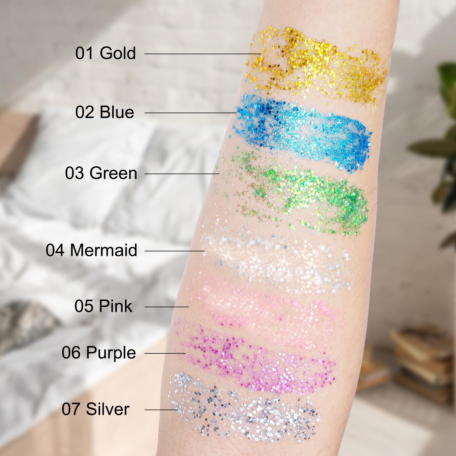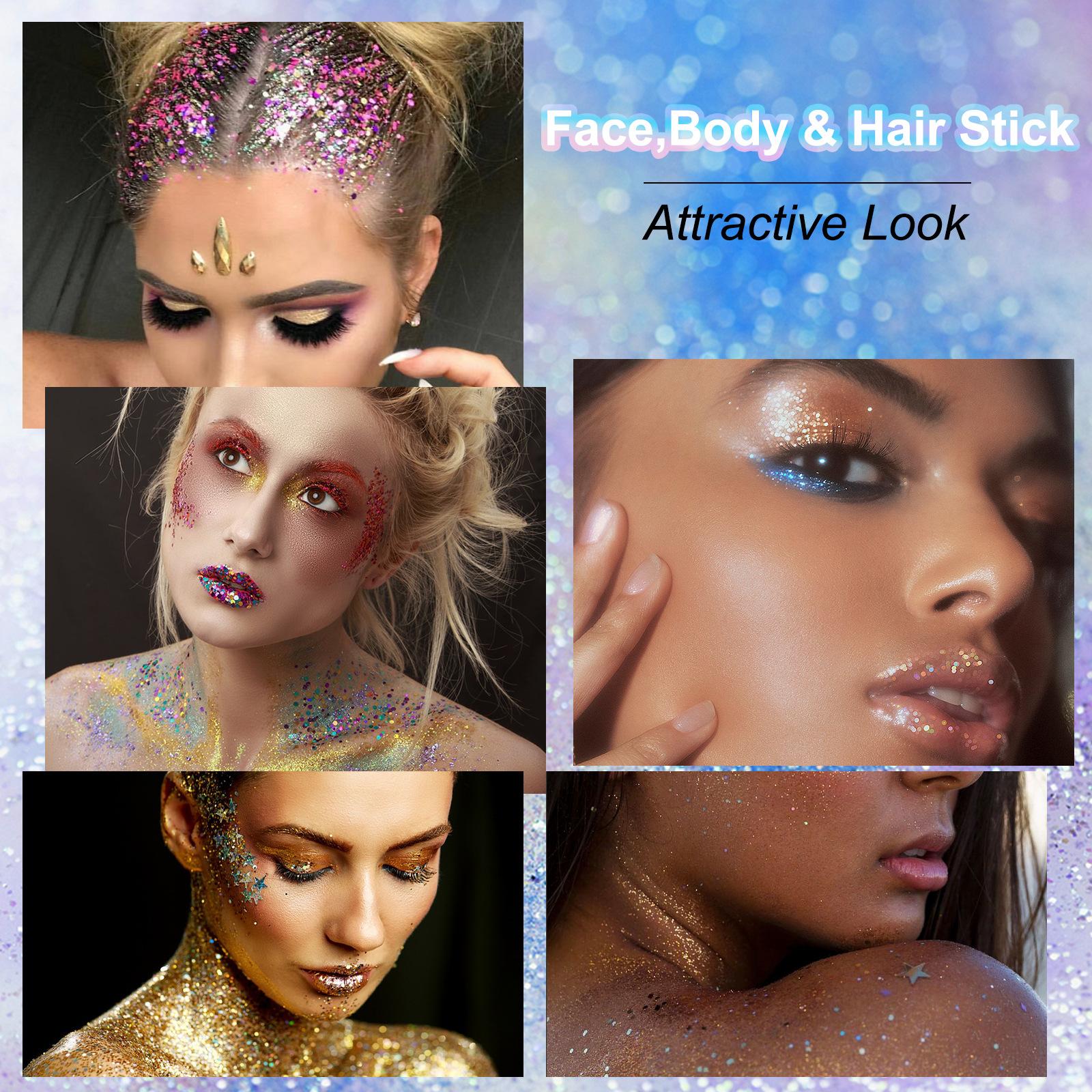 2. Fácil de usar y limpiar, glitter sólido pegajoso, no necesita ningún pegamento, fácil de aplicar y ahorra tiempo, se puede quitar fácilmente con agua y jabón.