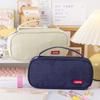Estuche sencillo portátil coreano de doble capa para lápices, tela Oxford, color sólido, estuche de papelería para estudiantes, estuche multifuncional para lápices al por mayor con logo