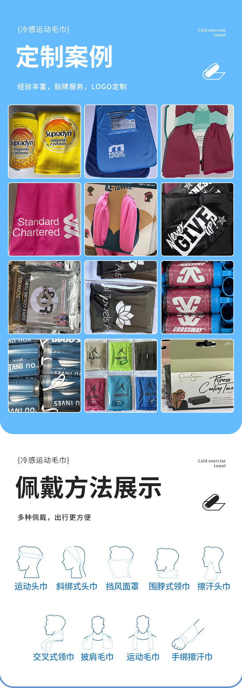 La toalla refrescante admite personalización., proporcionar servicio de revisión,Personalizado con imágenes y muestras, varios logotipos, números y textos promocionales., servicio personalizado eficiente;