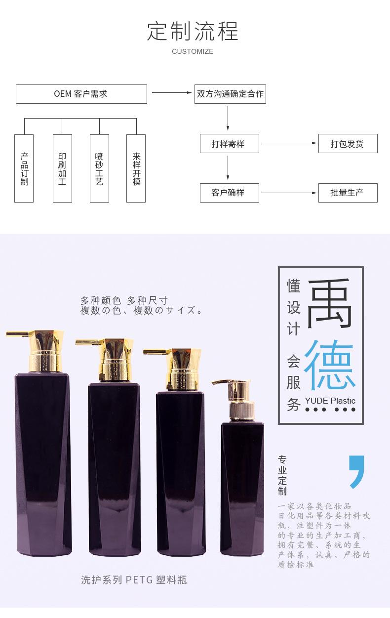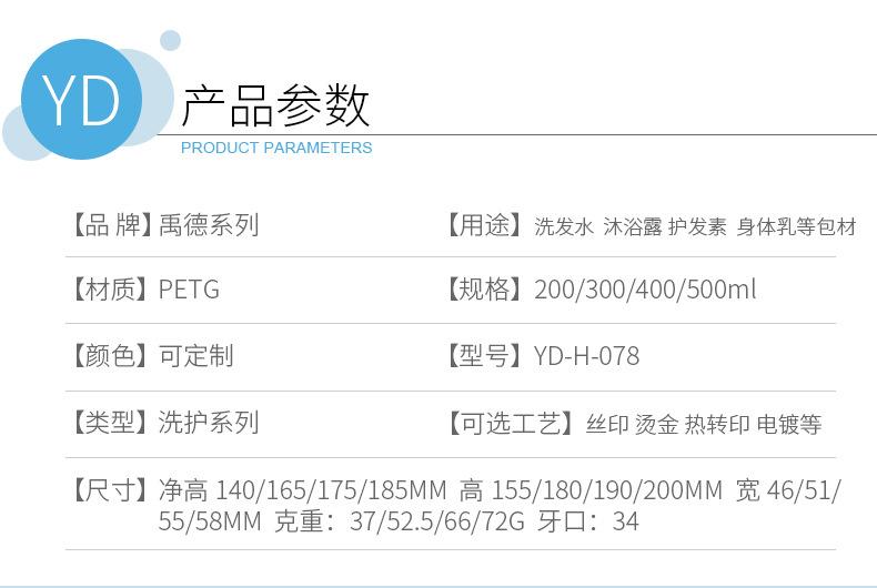 Botella de champú PETG de 500 ml, botella de gel de ducha, acondicionador, leche corporal, botella de loción de 200 ml, botella de prensa personalizada