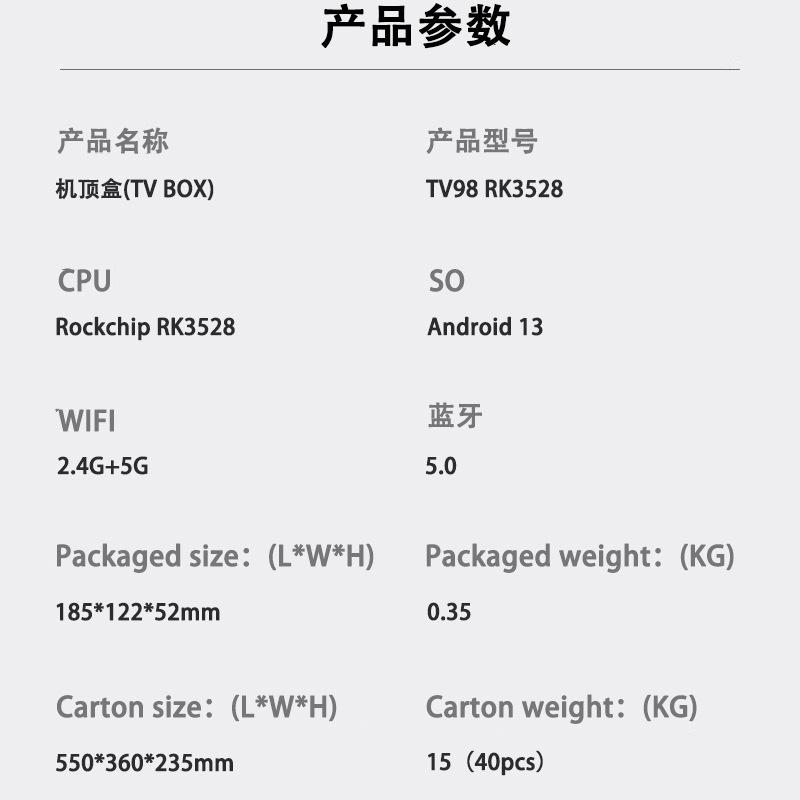Tv98 Rk3528 Decodificador 8K 4K Hd 5g Doble Wifi6 Android 13 Caja de TV Caja de TV