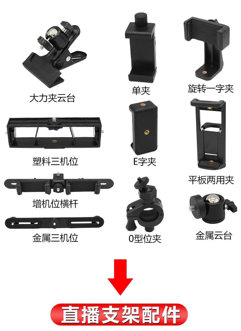 Accesorios de soporte de transmisión en vivo para teléfono móvil al por mayor de fábrica, soporte de lámpara de metal con inclinación y giro, clip giratorio para aumentar la posición, clip E