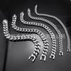 Collar y pulsera de cadena cubana de acero de titanio con hebilla de acero inoxidable, cadena redonda fresada con cifrado, accesorios de ropa de hip hop callejero para hombre.