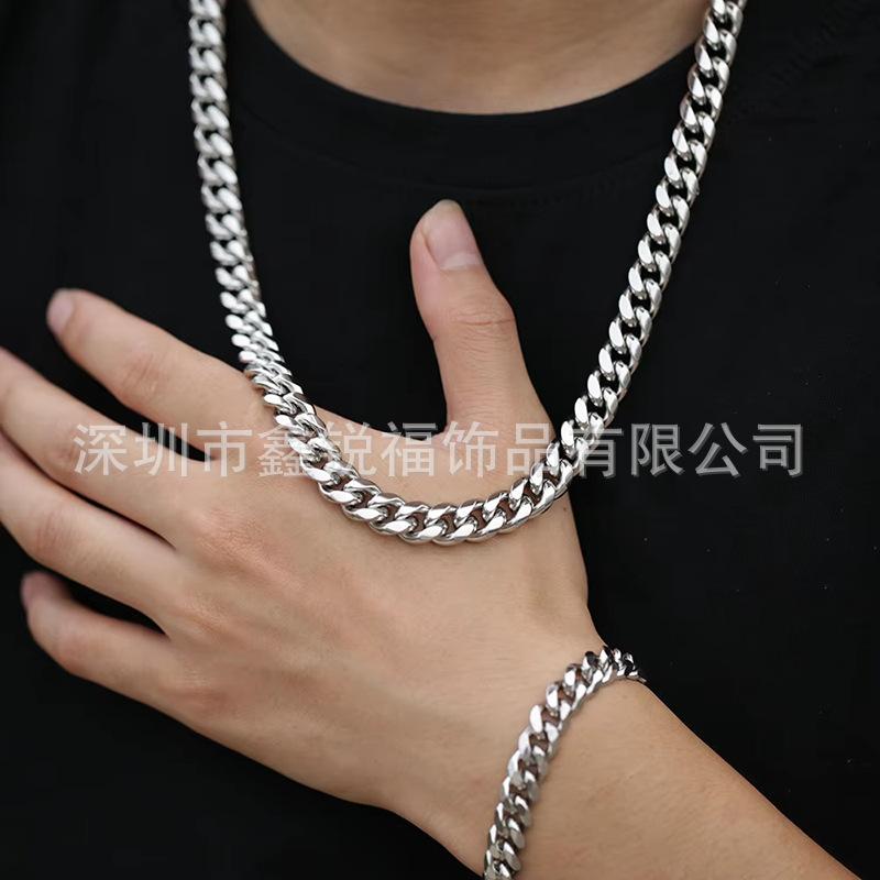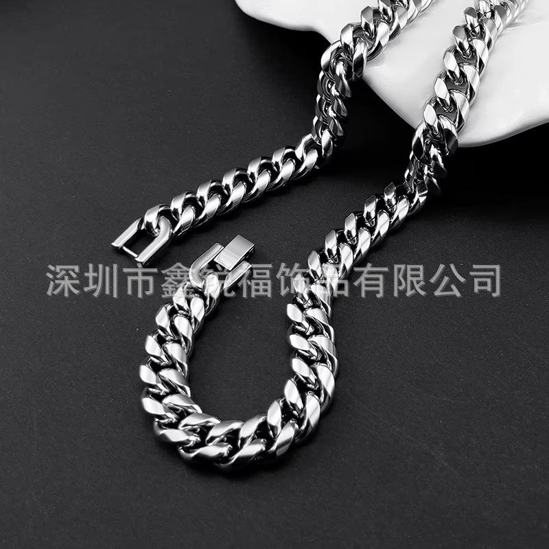 Compra Collar y pulsera de cadena cubana de acero de titanio con hebilla de acero inoxidable, cadena redonda fresada con cifrado, accesorios de ropa de hip hop callejero para hombre. al por mayor en Joom.pro
