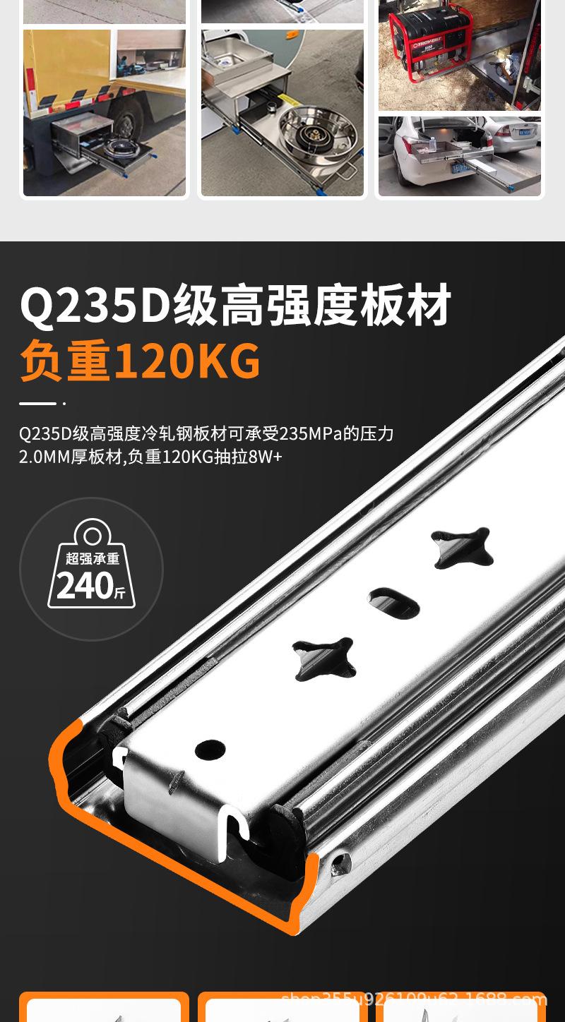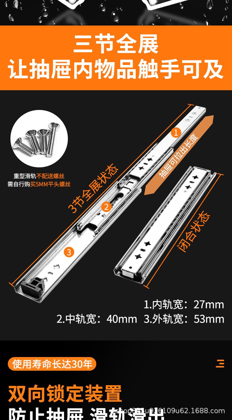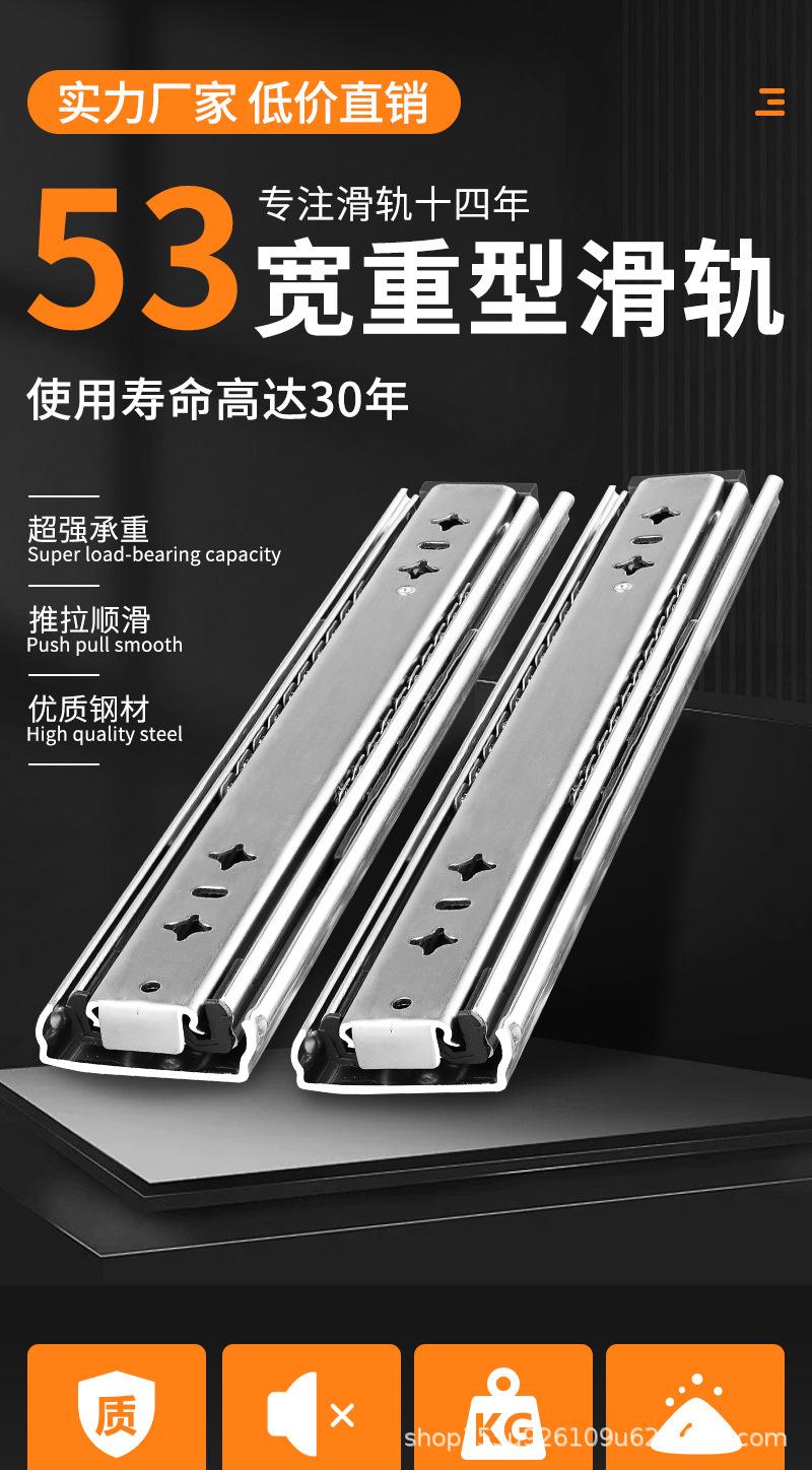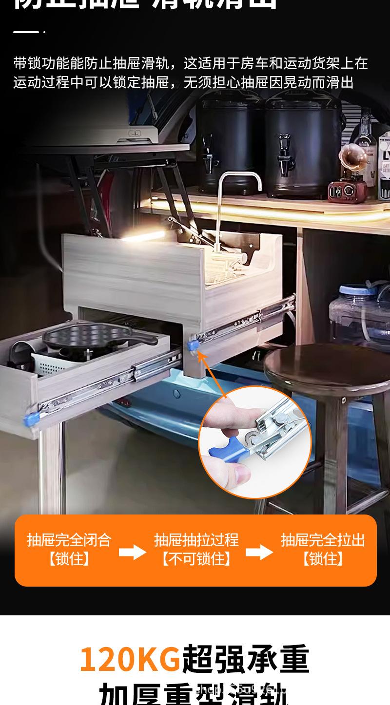 Riel deslizante industrial de alta resistencia de 53 pulgadas de ancho, venta al por mayor, riel guía de carga de 100 kg con cerradura, riel deslizante de tres secciones para cajón de RV