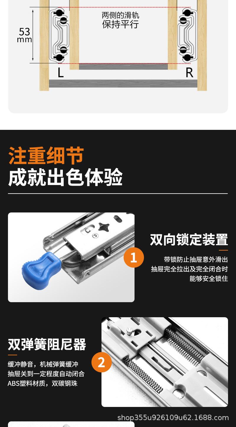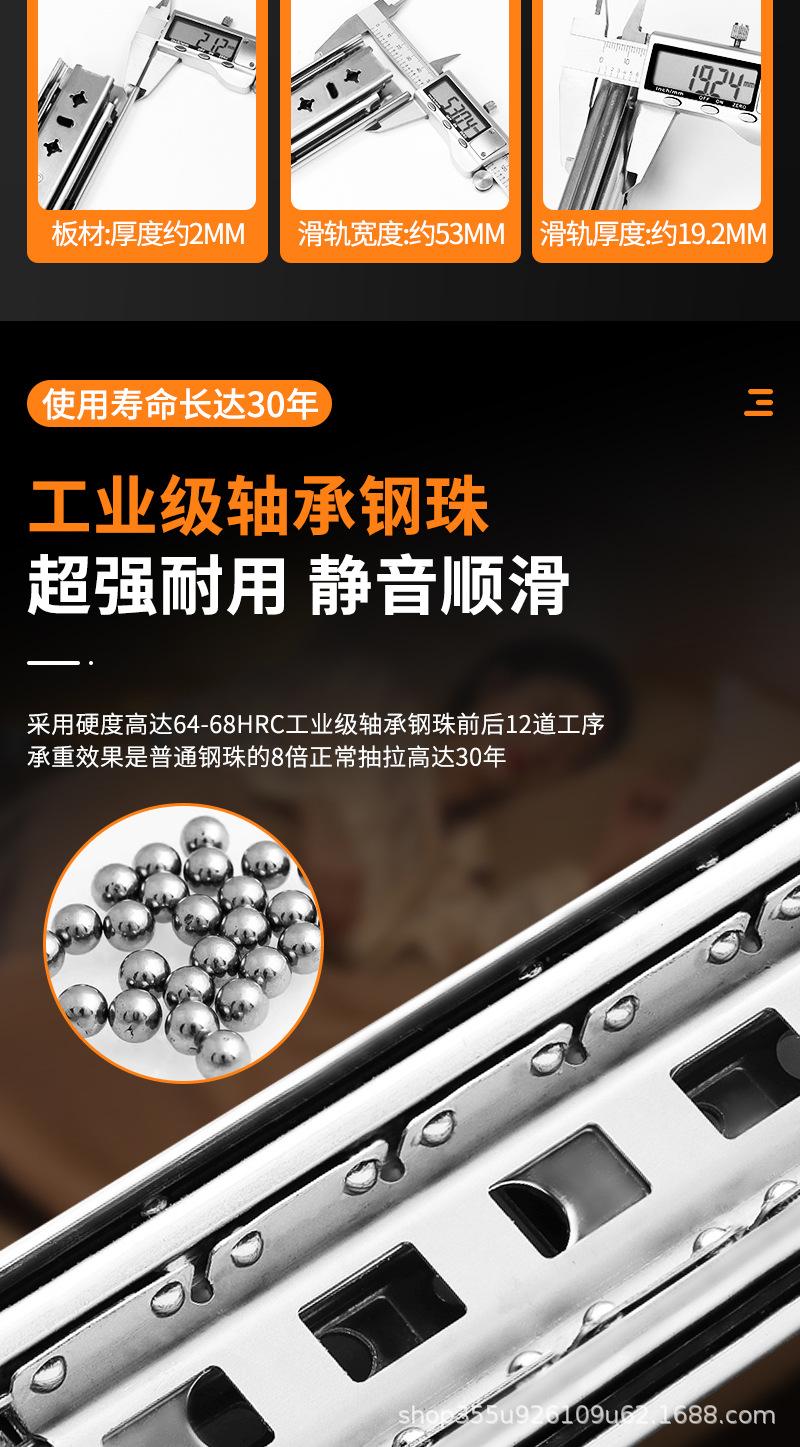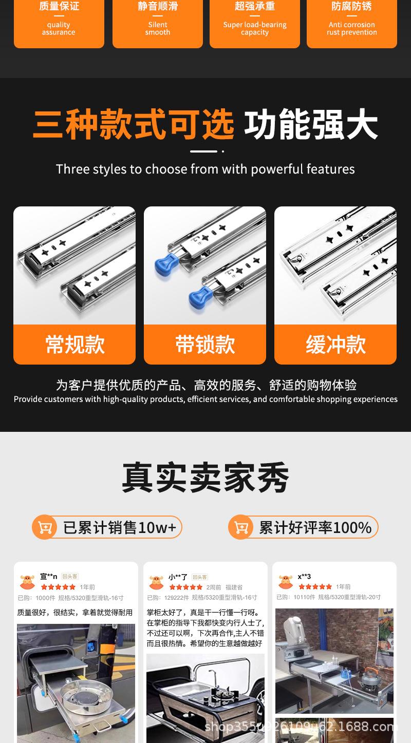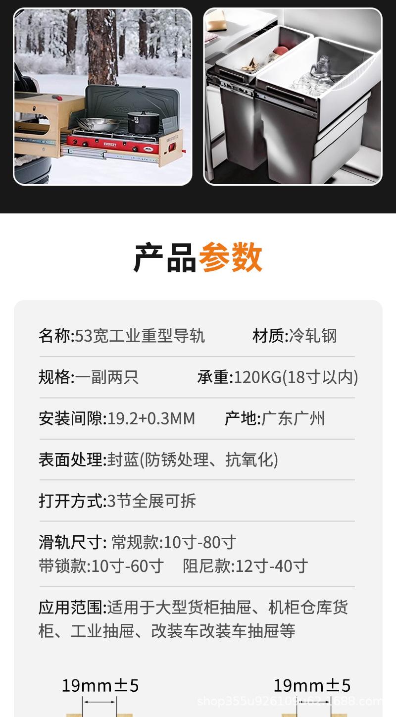 Riel deslizante industrial de alta resistencia de 53 pulgadas de ancho, venta al por mayor, riel guía de carga de 100 kg con cerradura, riel deslizante de tres secciones para cajón de RV