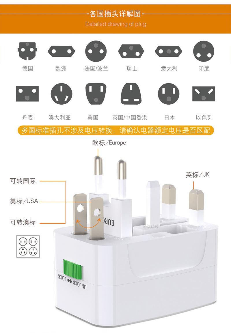 El enchufe nacional y la parte del enchufe adoptan un diseño de enchufe universal combinado, que acepta la conversión de funciones mutuas de enchufes de alimentación en más de 150 países alrededor del mundo.