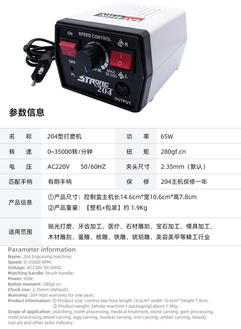Máquina pulidora dental, máquina de grabado 204, pequeña pulidora, tallado de dientes de jade, tallado nuclear, pulidora dental eléctrica colgante