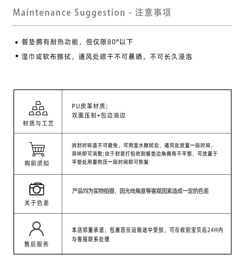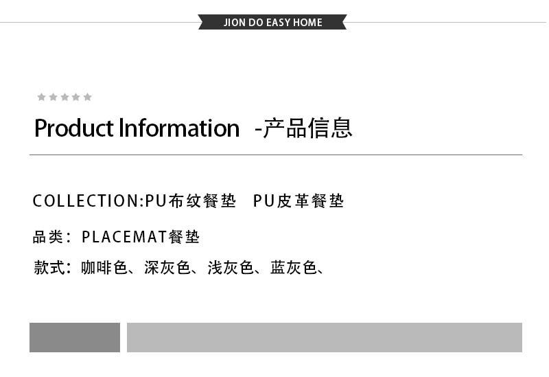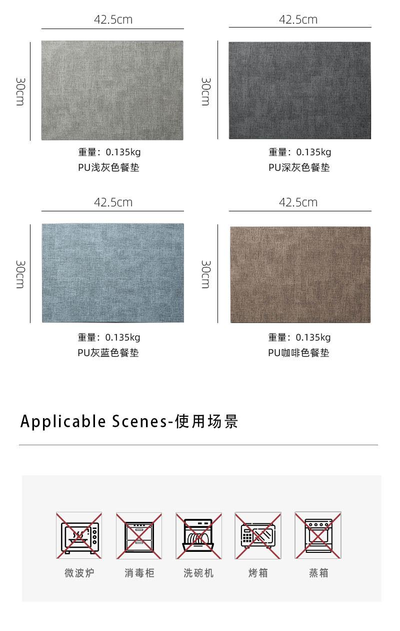 PU-Brown placemat, Pu-grey blue placemat, PU-dark gray placemat, PU-light gray placemat
