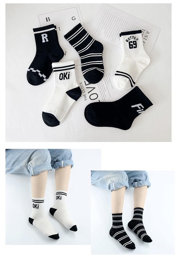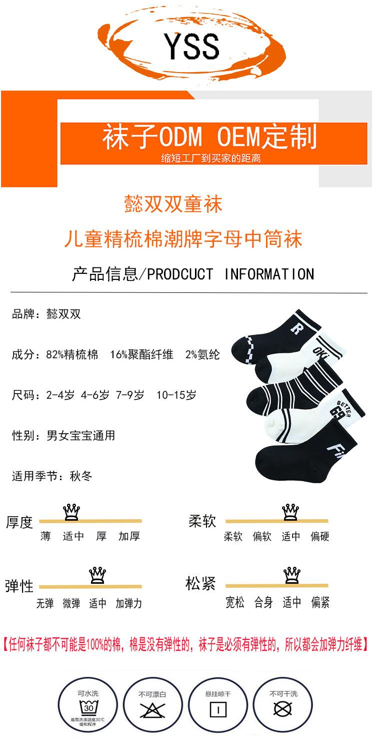 Calcetines para niños Yi Pair Otoño e Invierno Nuevo Marca de moda Letra Calcetines de media caña Algodón peinado Calcetines deportivos para niños Calcetines de algodón para niños grandes