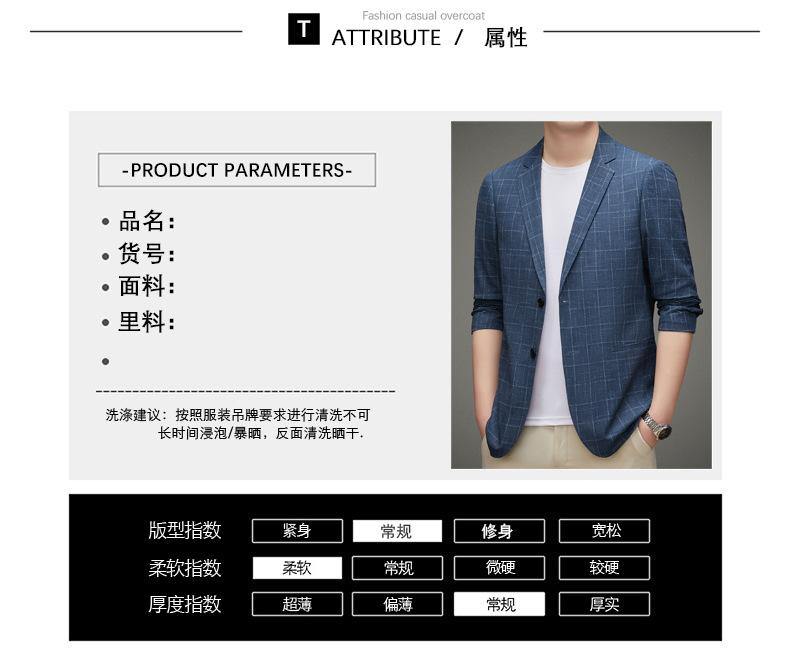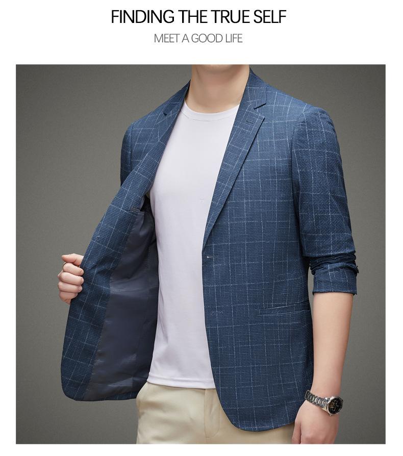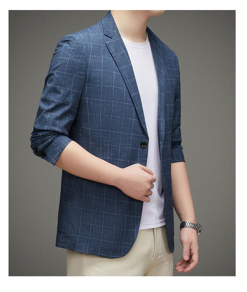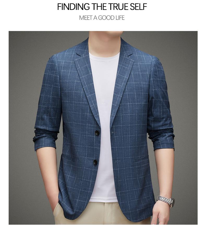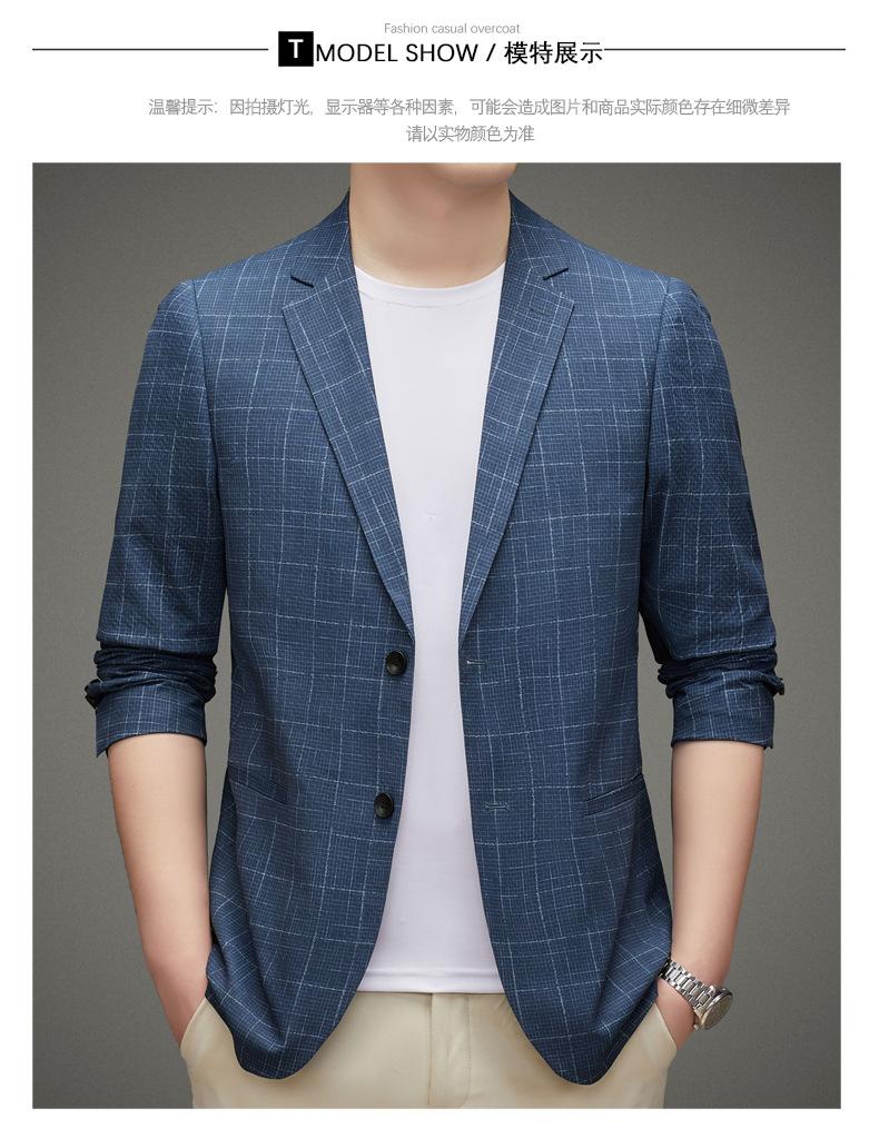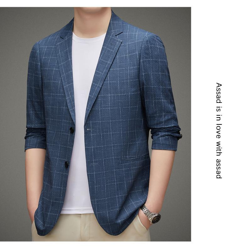 Chaqueta de Traje para Hombre Talla Pequeña Traje Casual Moderno a Cuadros Estilo Maduro Ligero para Hombre Primavera y Otoño 2024 Guapo Top de Una Pieza