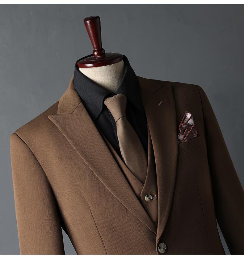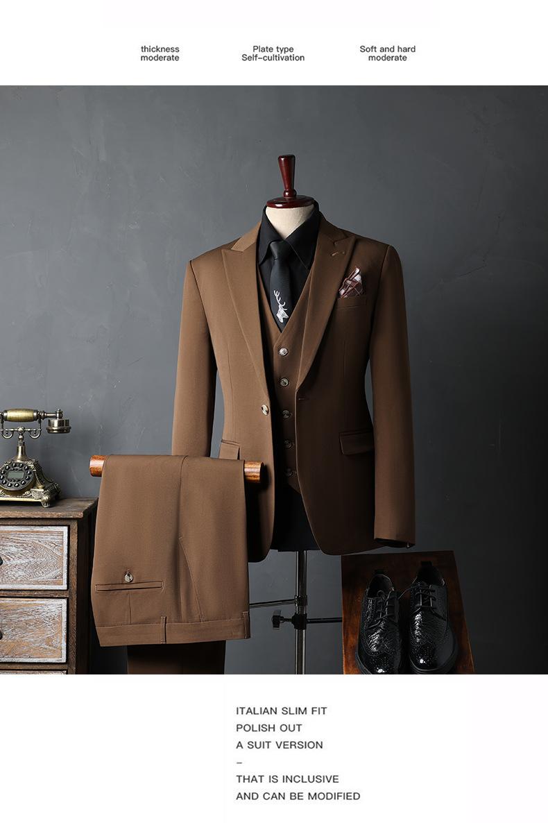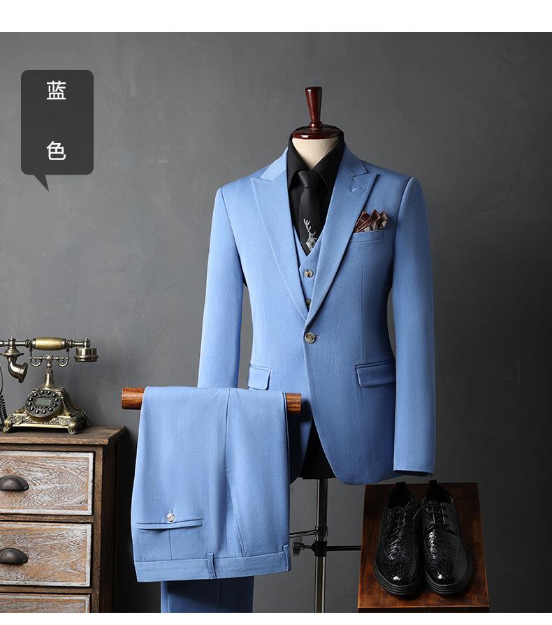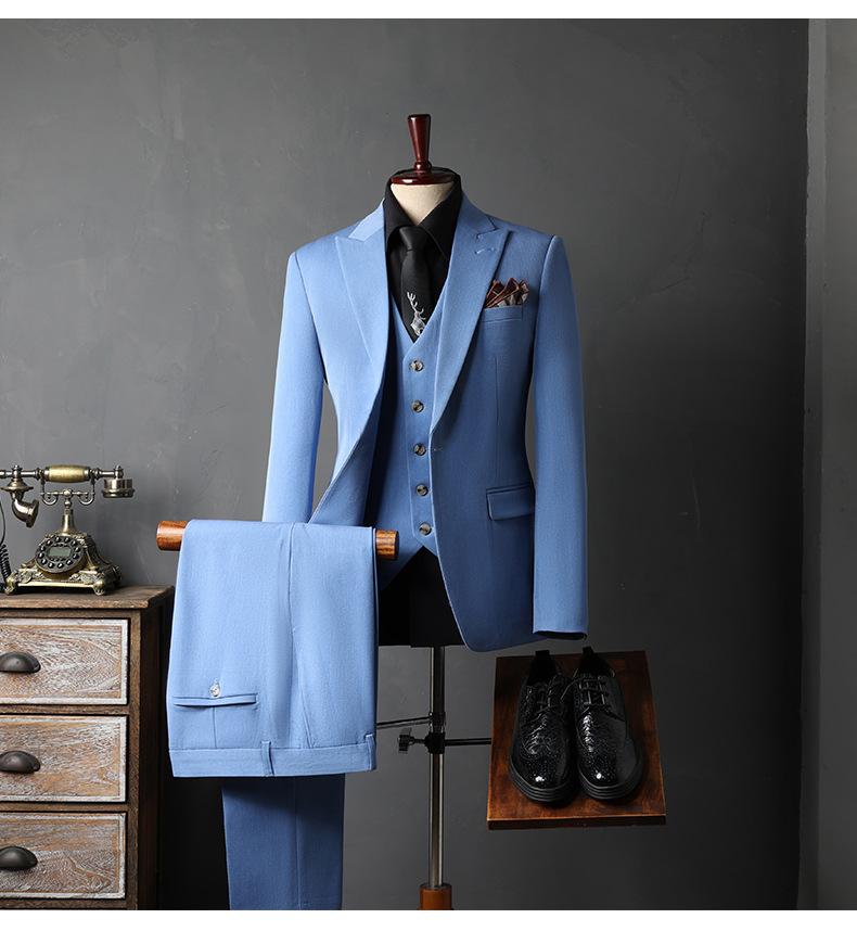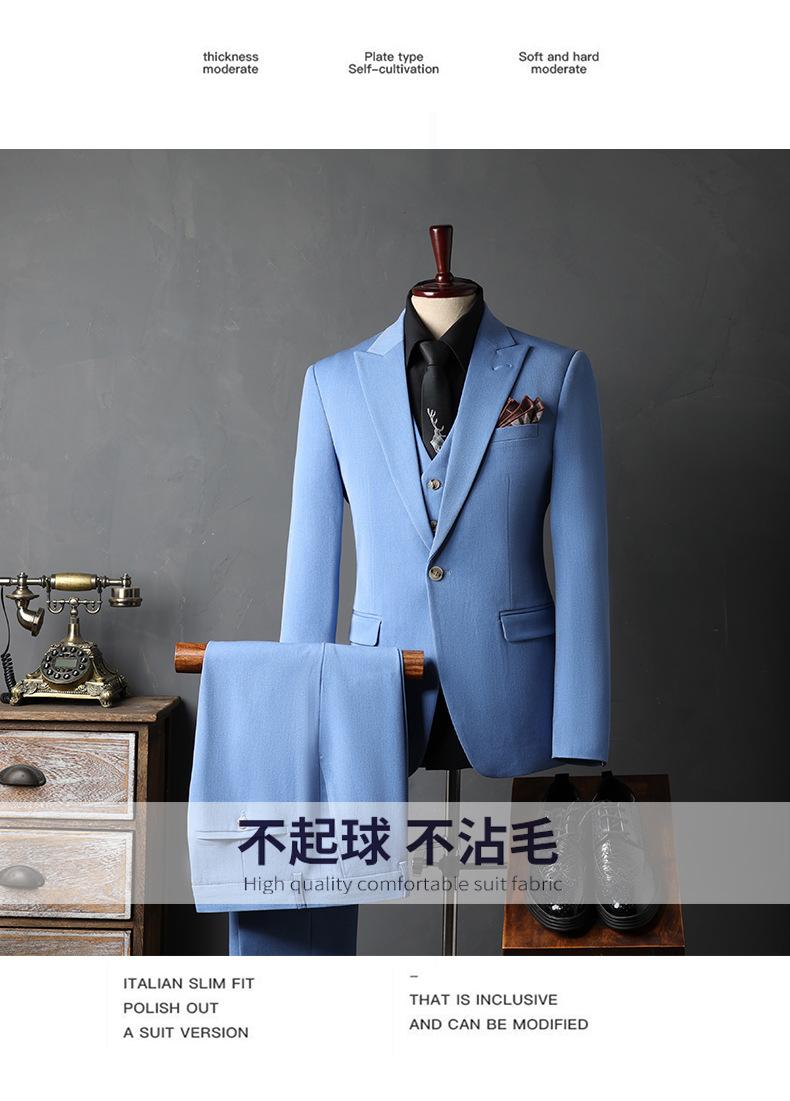 Traje de Novio traje Conjunto de Tres Piezas para Hombre Corte Slim Estilo Coreano Vestido de Boda Negocios Casual Guapo Traje de Color Sólido para Hombre