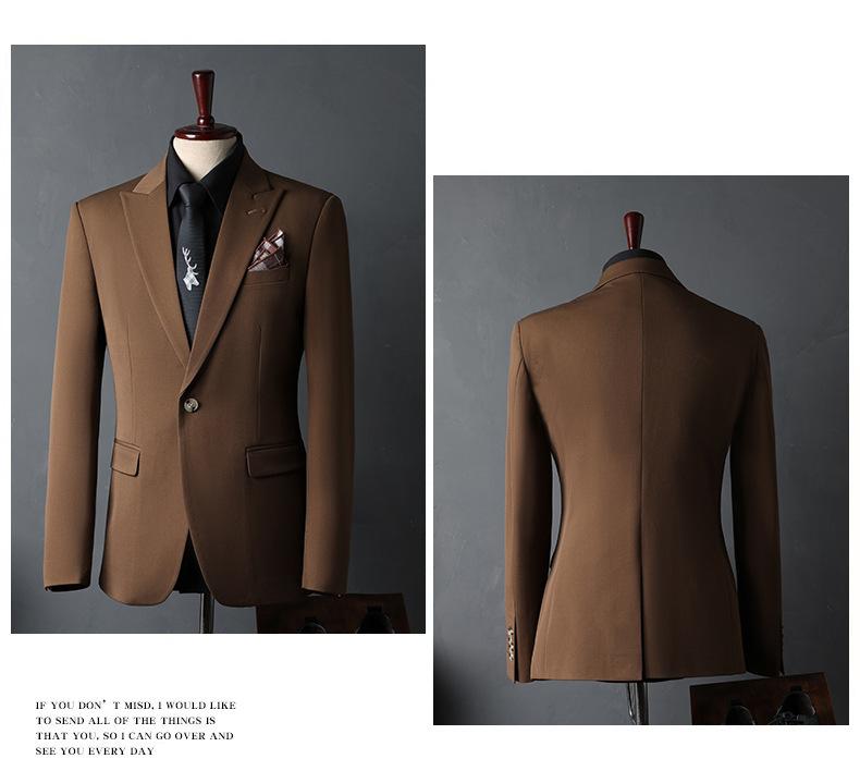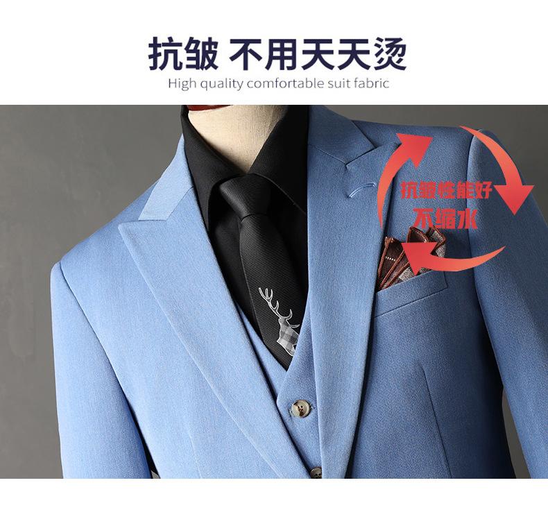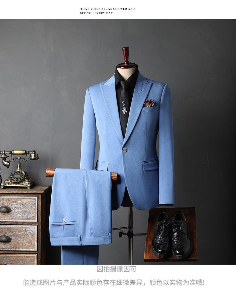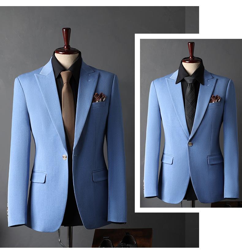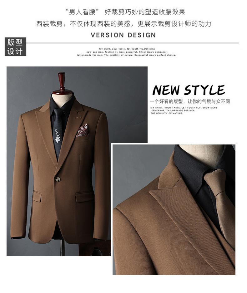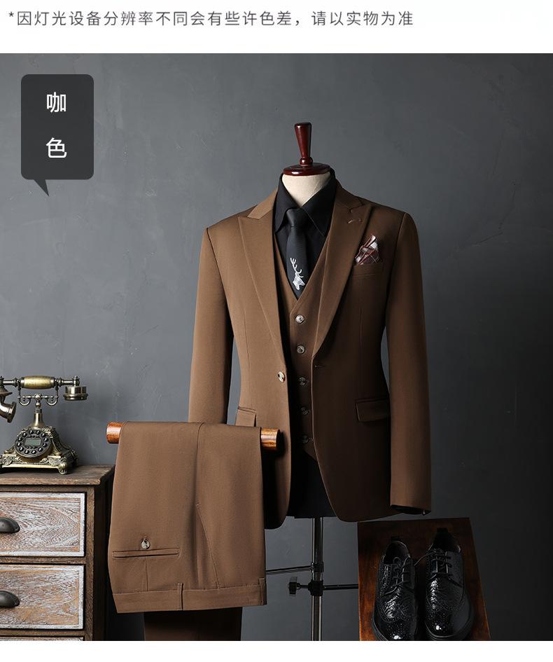 Traje de Novio traje Conjunto de Tres Piezas para Hombre Corte Slim Estilo Coreano Vestido de Boda Negocios Casual Guapo Traje de Color Sólido para Hombre