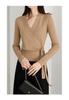 Suéter ajustado con cuello en V y tirantes cruzados para mujer, primavera y otoño de 2024