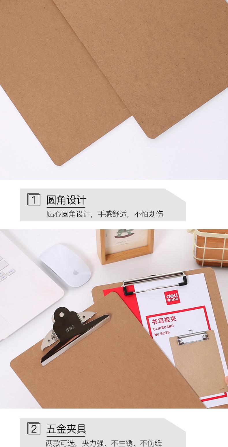 Clip para tablero de escritura Deli A4 de madera 9226, clip para tablero duro, carpeta colgante de oficina, soporte de lectura, clip para menú