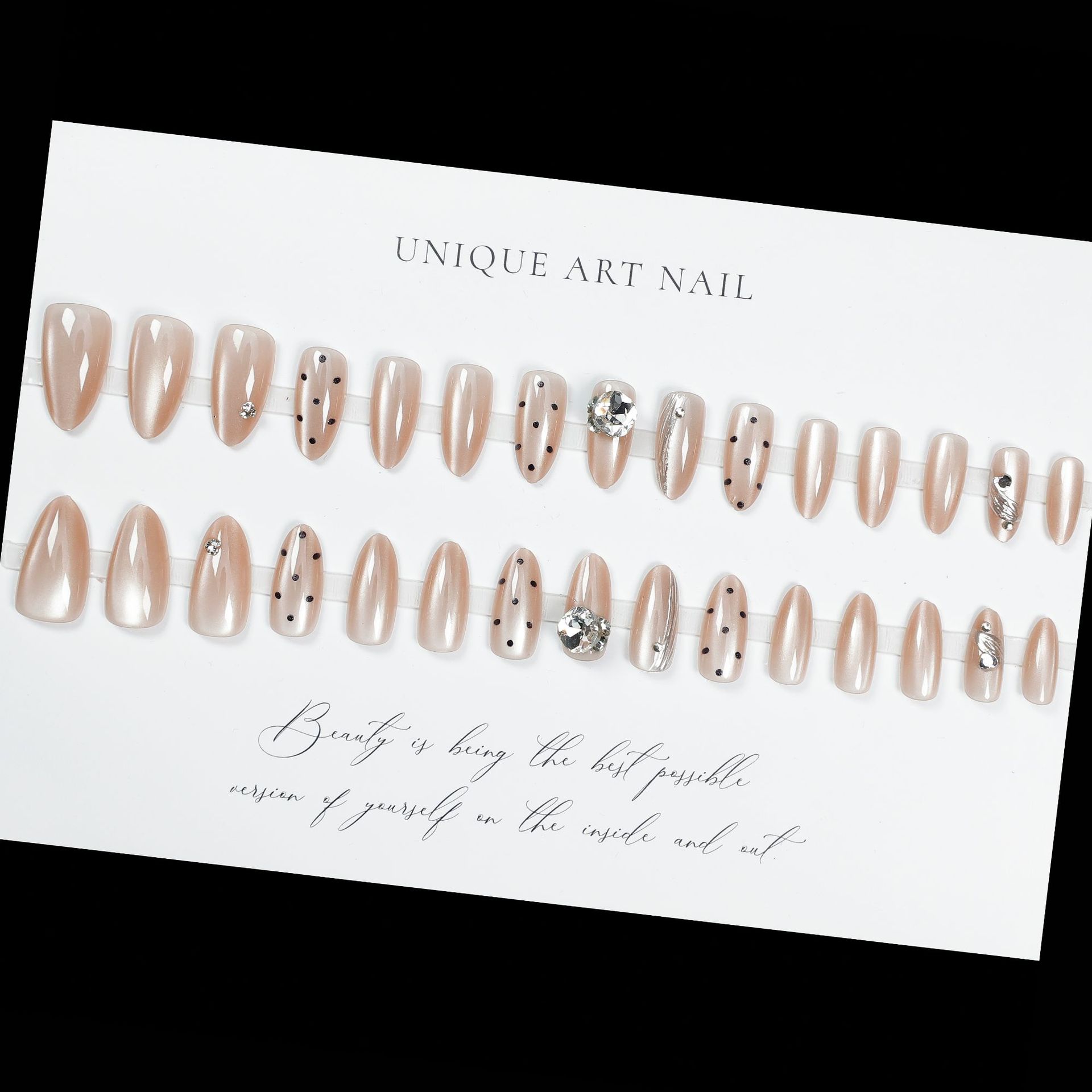 [Escritura a la luz de la luna] Usar Armadura Verano Oro Sentido Ojo de gato Punto de onda Estéreo Manual Parche de Arte de Uñas de Diamantes Chapado en Oro