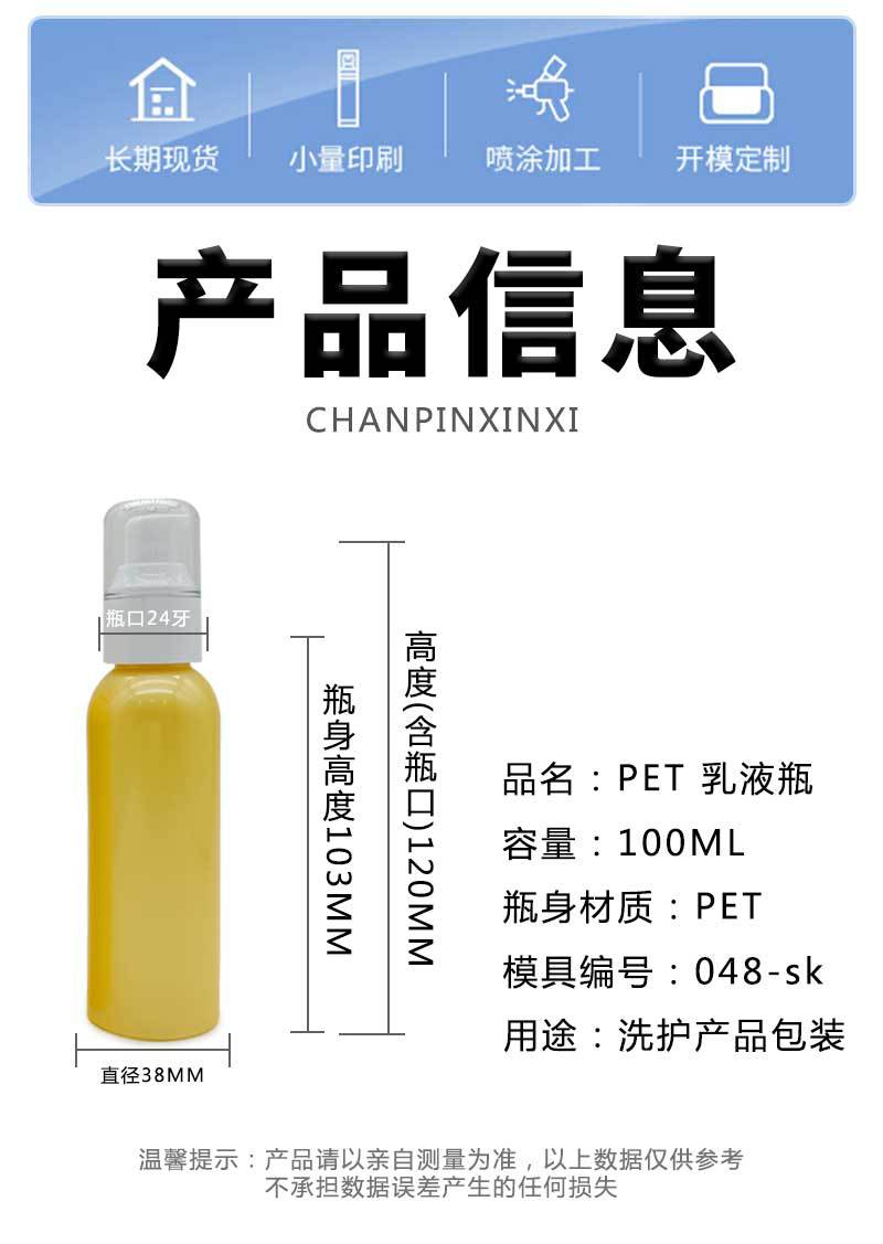 Botella de spray de 100 ml, botella de plástico PET, botella de loción, botella de desinfectante de manos portátil, botella de desinfectante de alcohol