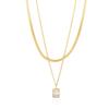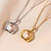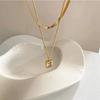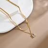 Diseño Nicho Europeo y Americano Acero Titanio Chapado en Oro de 18K Hueso de Serpiente Colgante de Gema Doble Capa Retro Estilo Frío Collar Corto