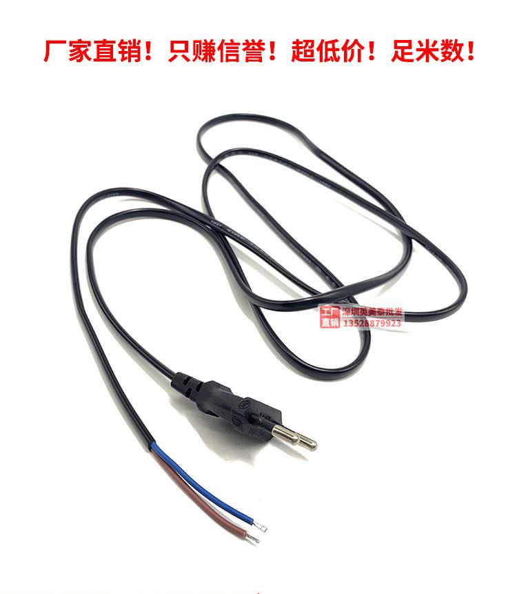 Cable de alimentación de calibre europeo estándar europeo, 2 núcleos, 0,75 mm, 1,5 m, extremo de cable desnudo, línea de conexión de dos enchufes de calibre europeo de 3 orificios