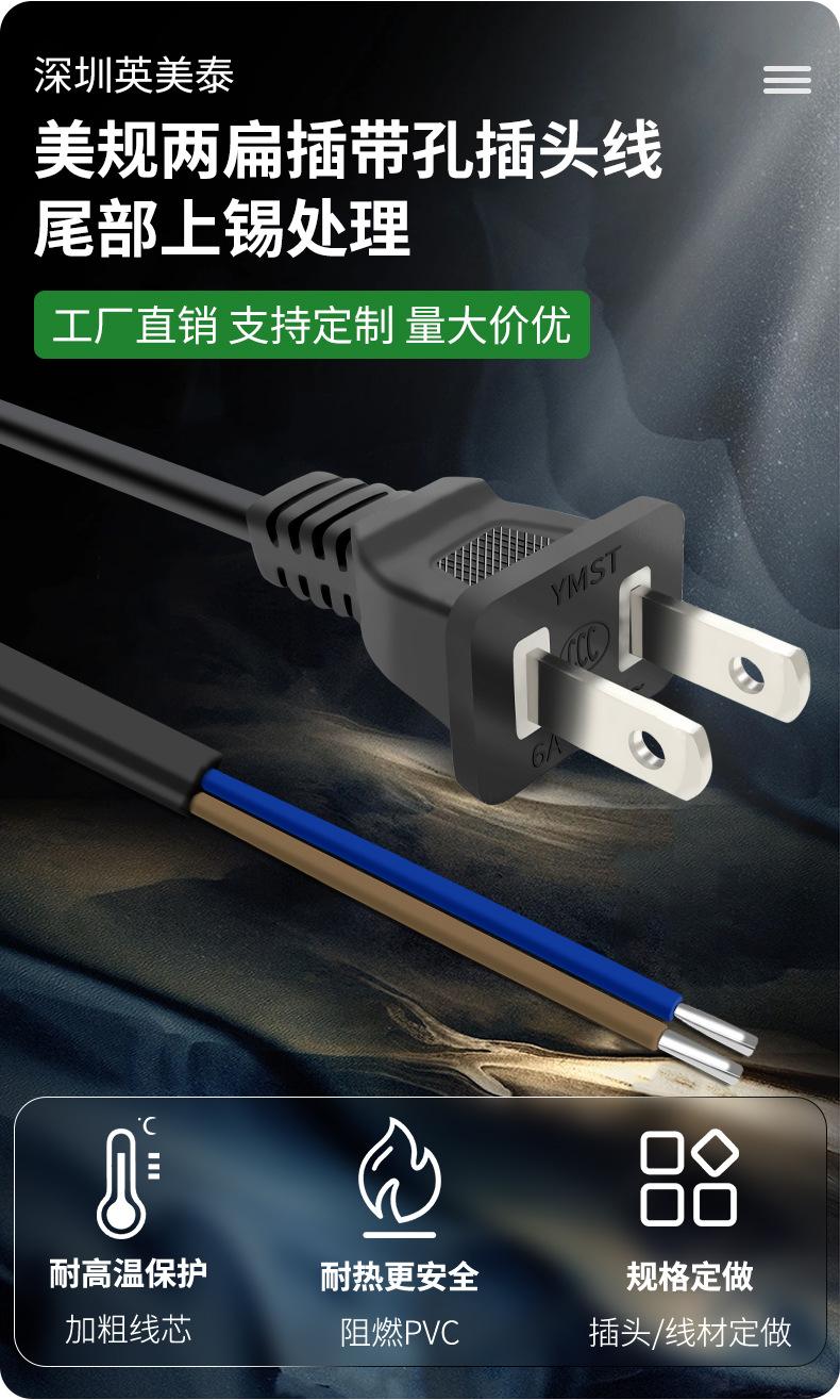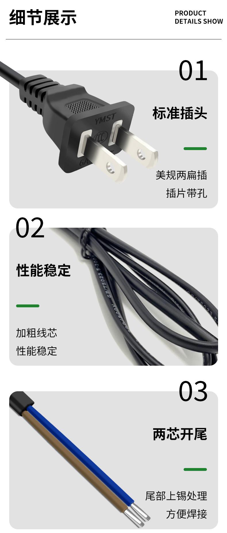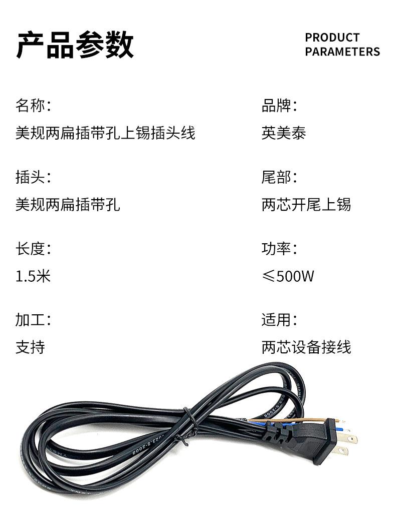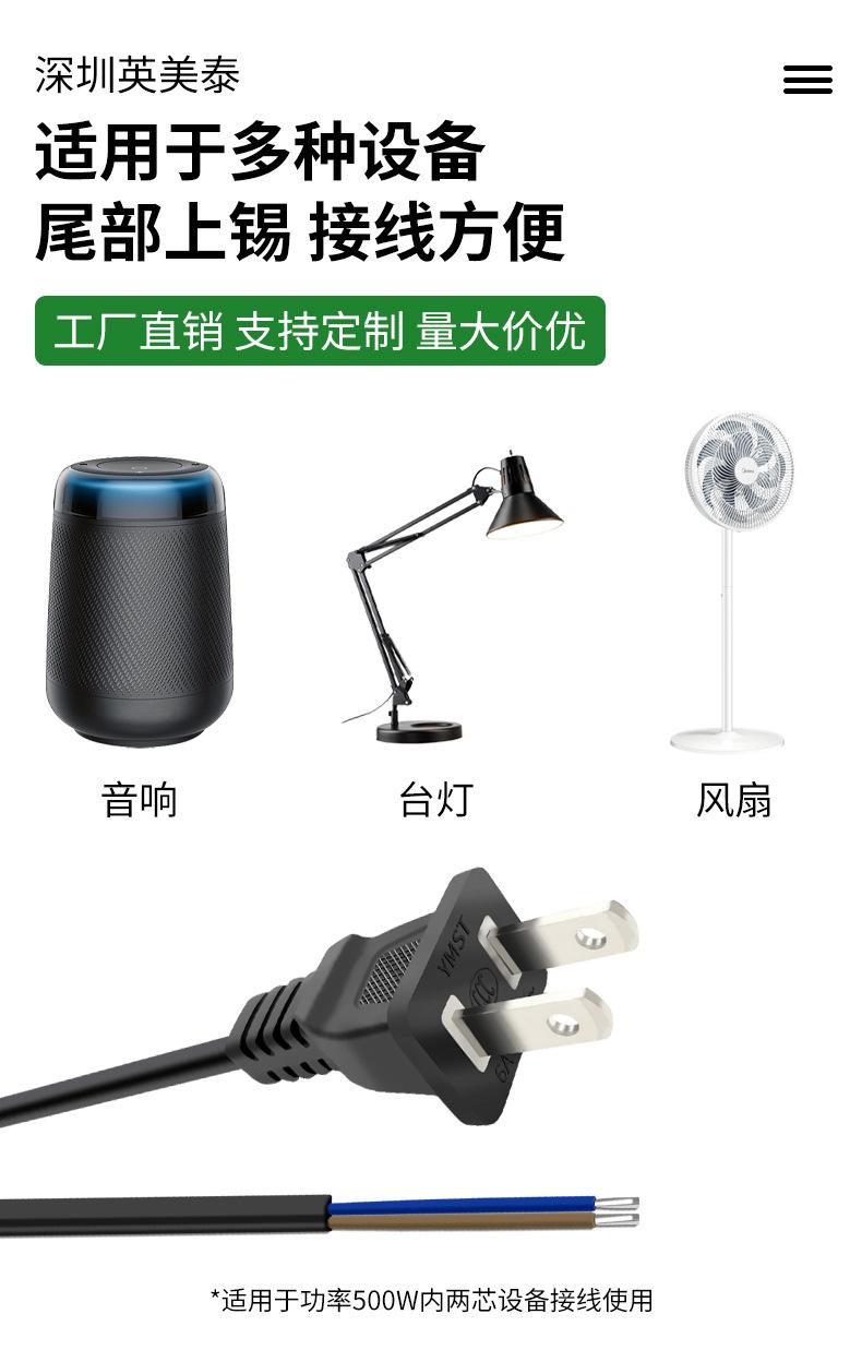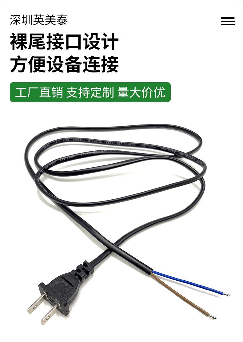 1,5 metros EE.UU.. Cable de alimentación de cola de alambre desnudo de calibre, ventilador, lámpara de escritorio, fuente de alimentación, línea de conexión de dos núcleos, línea de extensión de dos enchufes planos