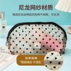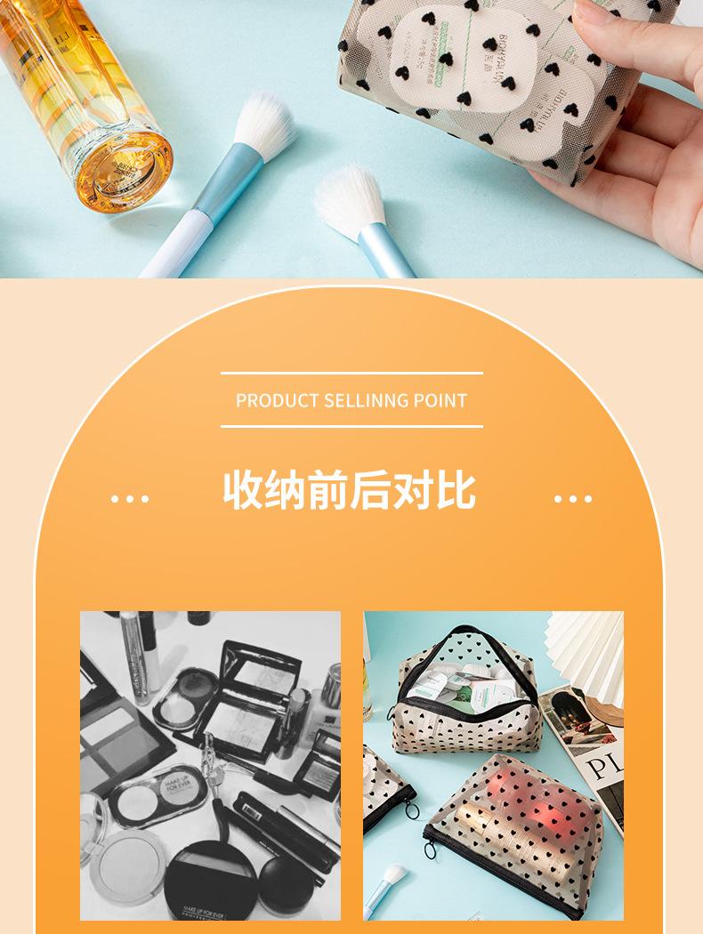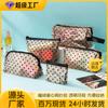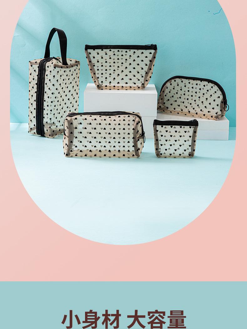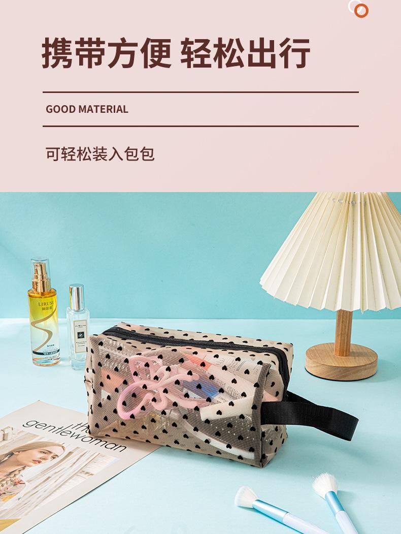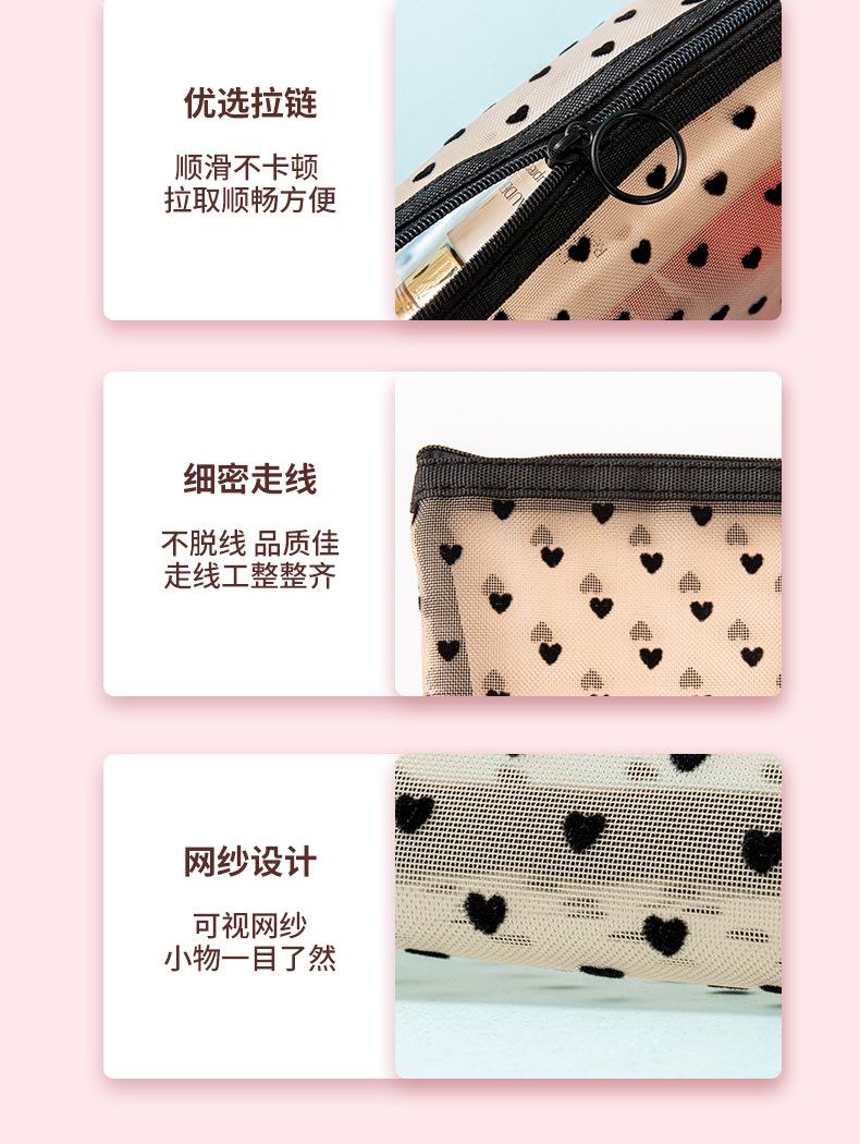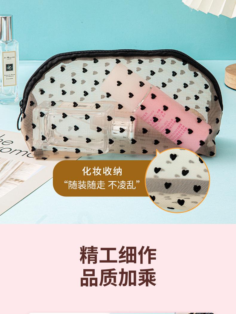 Verano Nuevo Flocado Amor Malla Transparente Portátil Bolsa de Cosméticos Gran Capacidad Portátil Viaje Neceser Almacenamiento