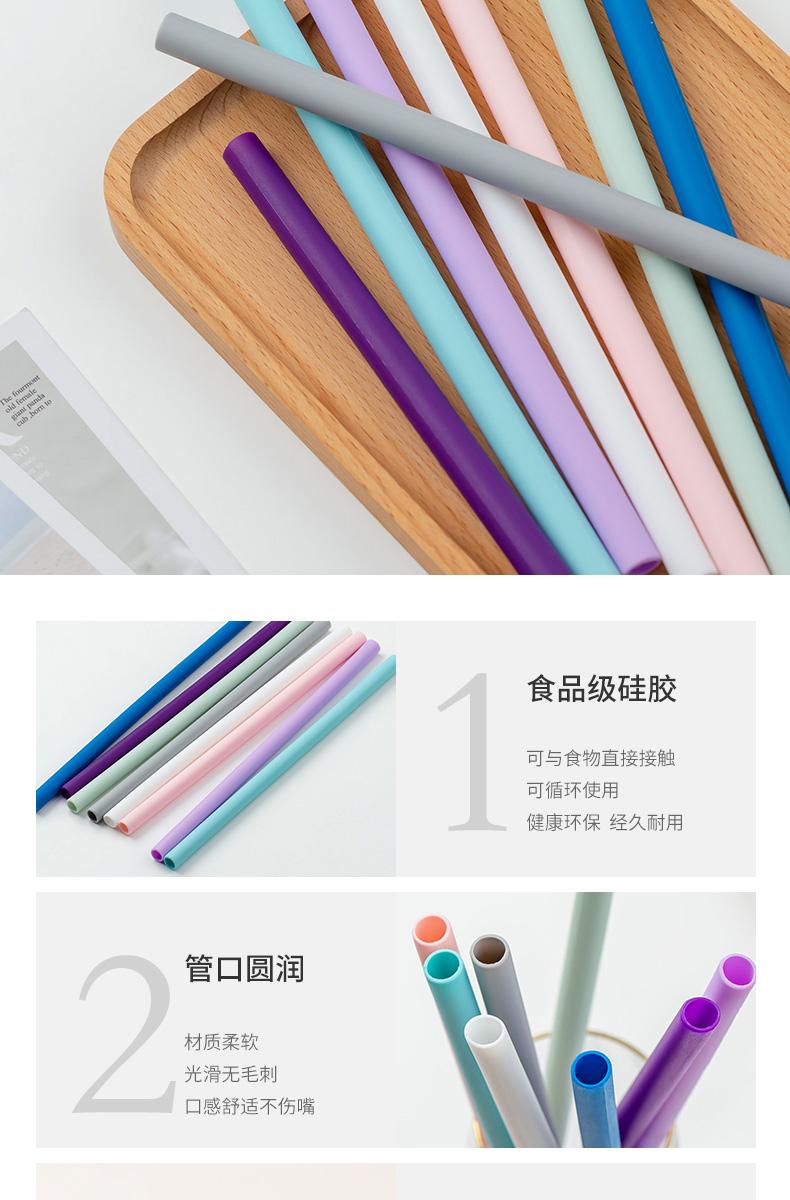Colorful Silicone Straw-Deep Purple [Curved + Straight + Suction Brush]]