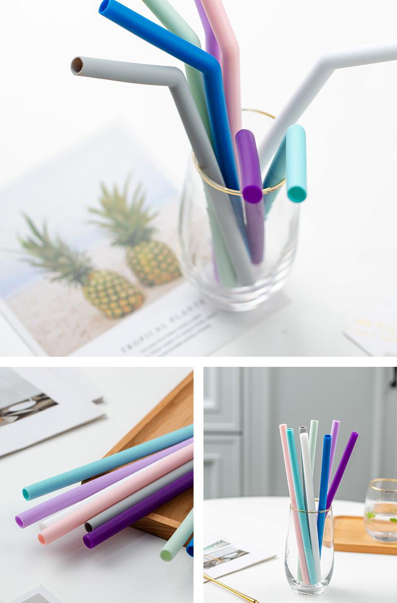 Popote de Silicona Jugo de Fruta Té con Leche Bebida Cóctel Bebida Popote Recto Largo Curvo Recto Reciclable No Desechable