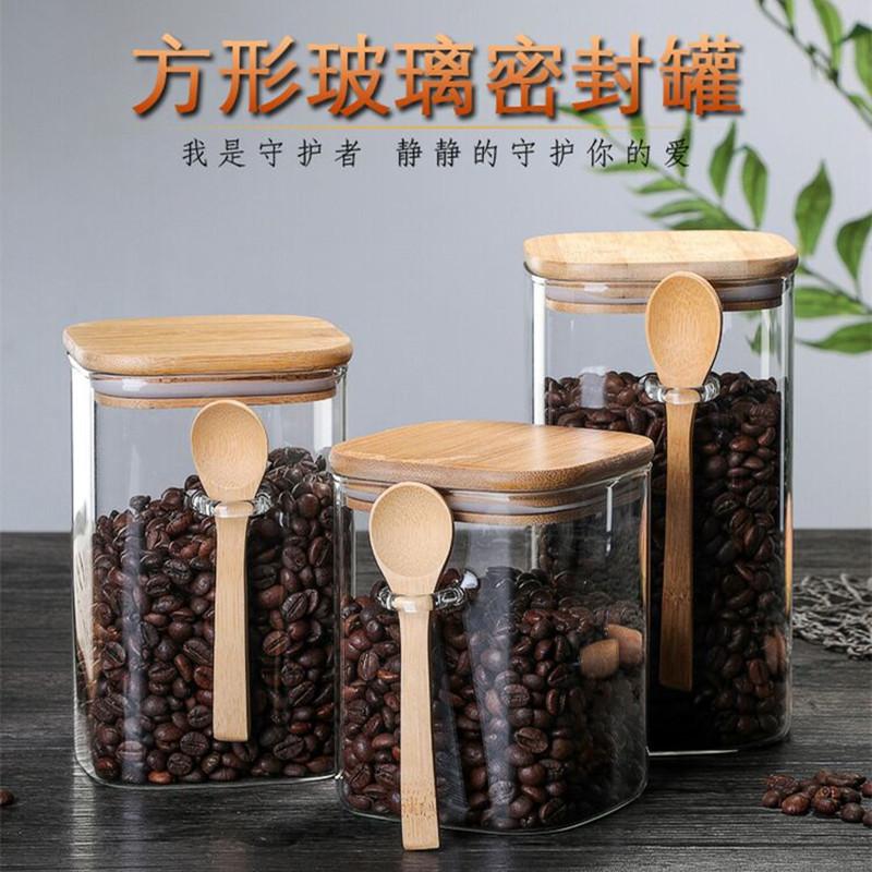 Frasco cuadrado sellado de borosilicato simple, nuevo frasco de té, frasco de vidrio sellado transparente para almacenar dulces y bocadillos.