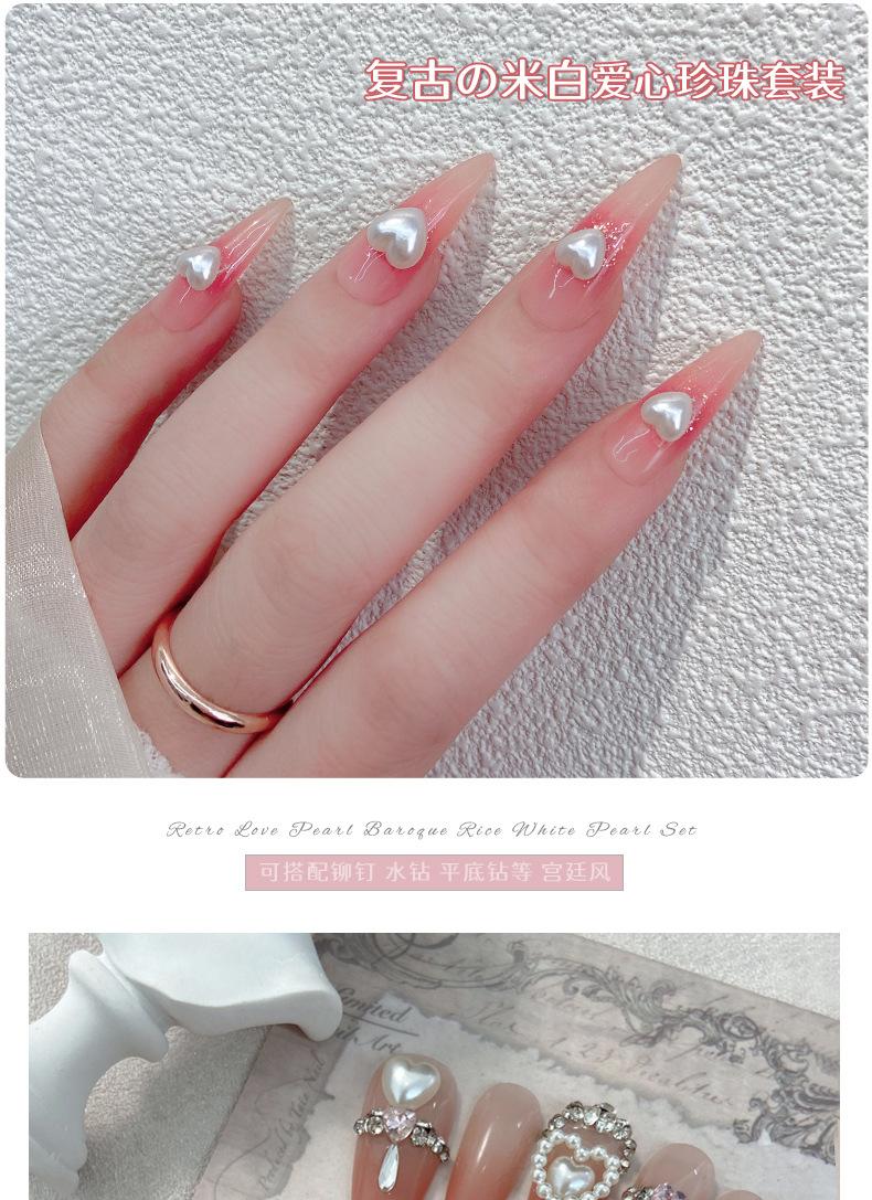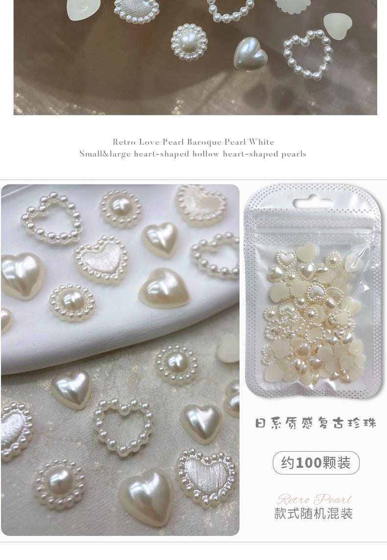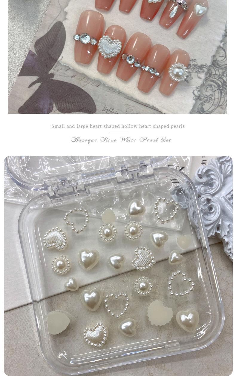 Joyería para Uñas de Perlas de Fondo Plano Mezclada con Decoración de Uñas de Corazón Grande Calado Corte Nuevo 2025 Diamantes DIY Gadgets Hechos a Mano