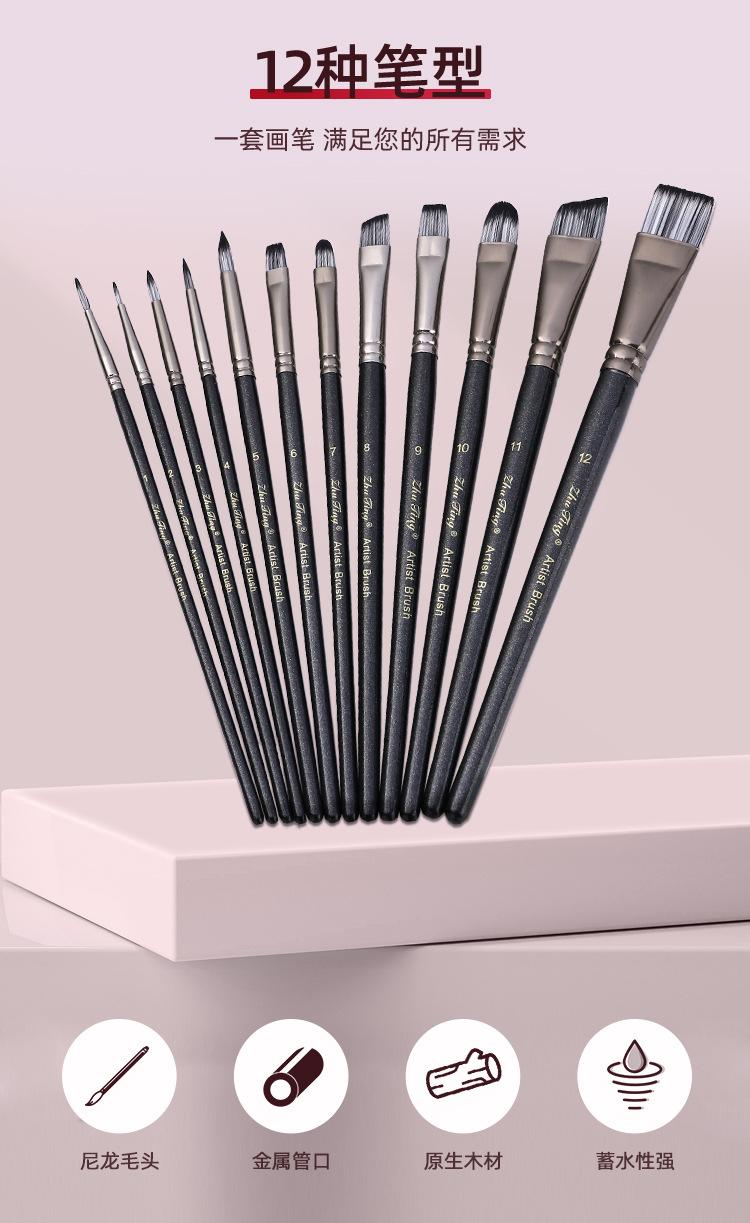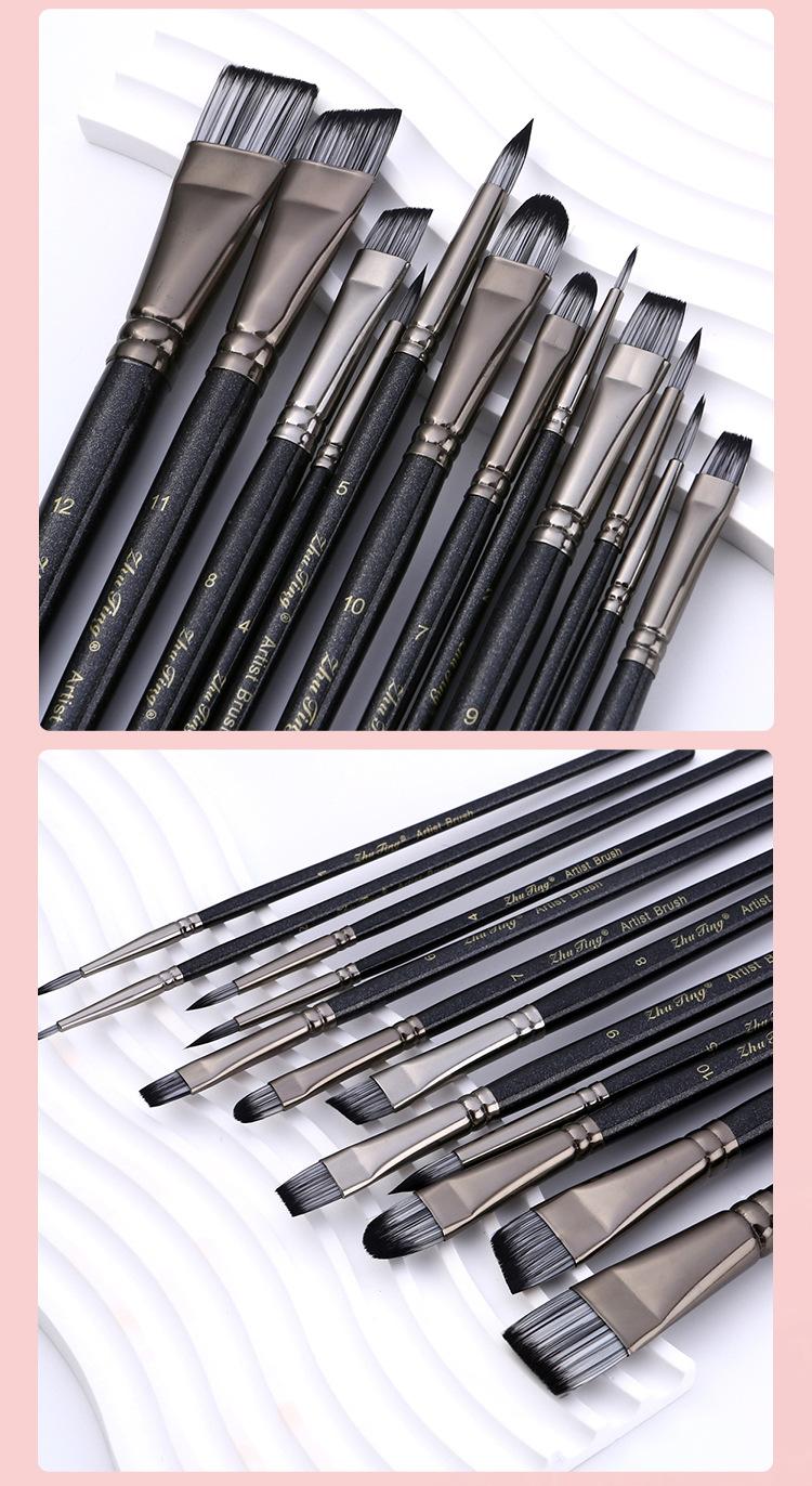Zhuling 12 Juego de Pinceles de Pelo de Nailon con Múltiples Cabezales Pincel para Pintura Facial Pincel Acrílico