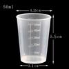 El diámetro superior del vaso de precipitados de 50 ml es de 5 cm, la parte más ancha es de 5,4 cm y el diámetro inferior es de 4,3 cm.