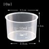El diámetro superior del vaso medidor de 15 ml es de 3,4 cm. El diámetro inferior es de 2,8 cm. La altura es de 2,7 cm.