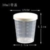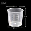El vaso medidor de 30 ml tiene un diámetro superior de 3,8 cm. El diámetro inferior es de 3,1 cm. La altura es de 3,5 cm.