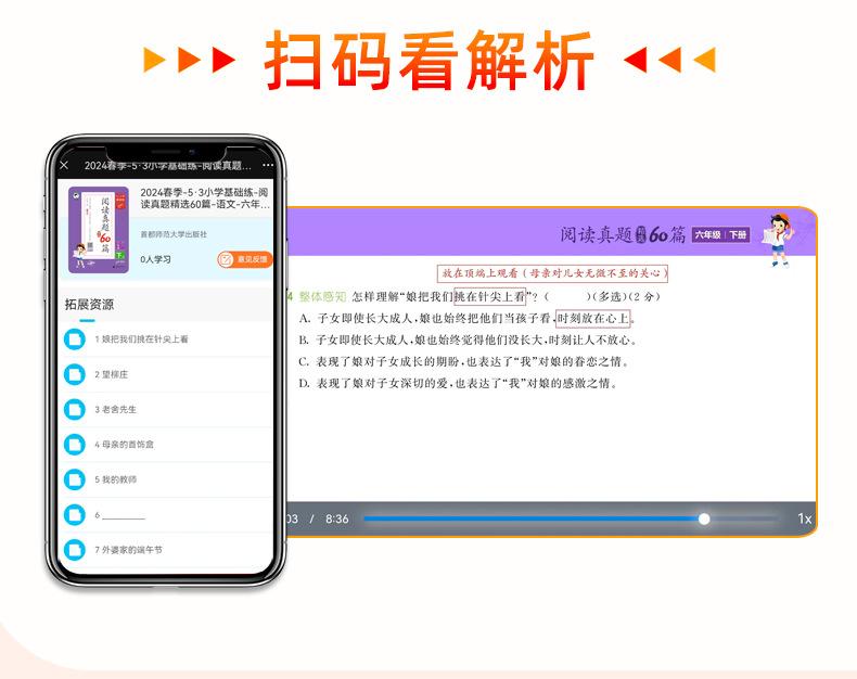 60 Preguntas de Prueba Reales para la Práctica Básica del Idioma Chino de Estudiantes de Primaria, Ejercicios Especiales de Lectura y una Colección Completa de 53 Ejercicios para Acumular y Memorizar Patrones de Oraciones