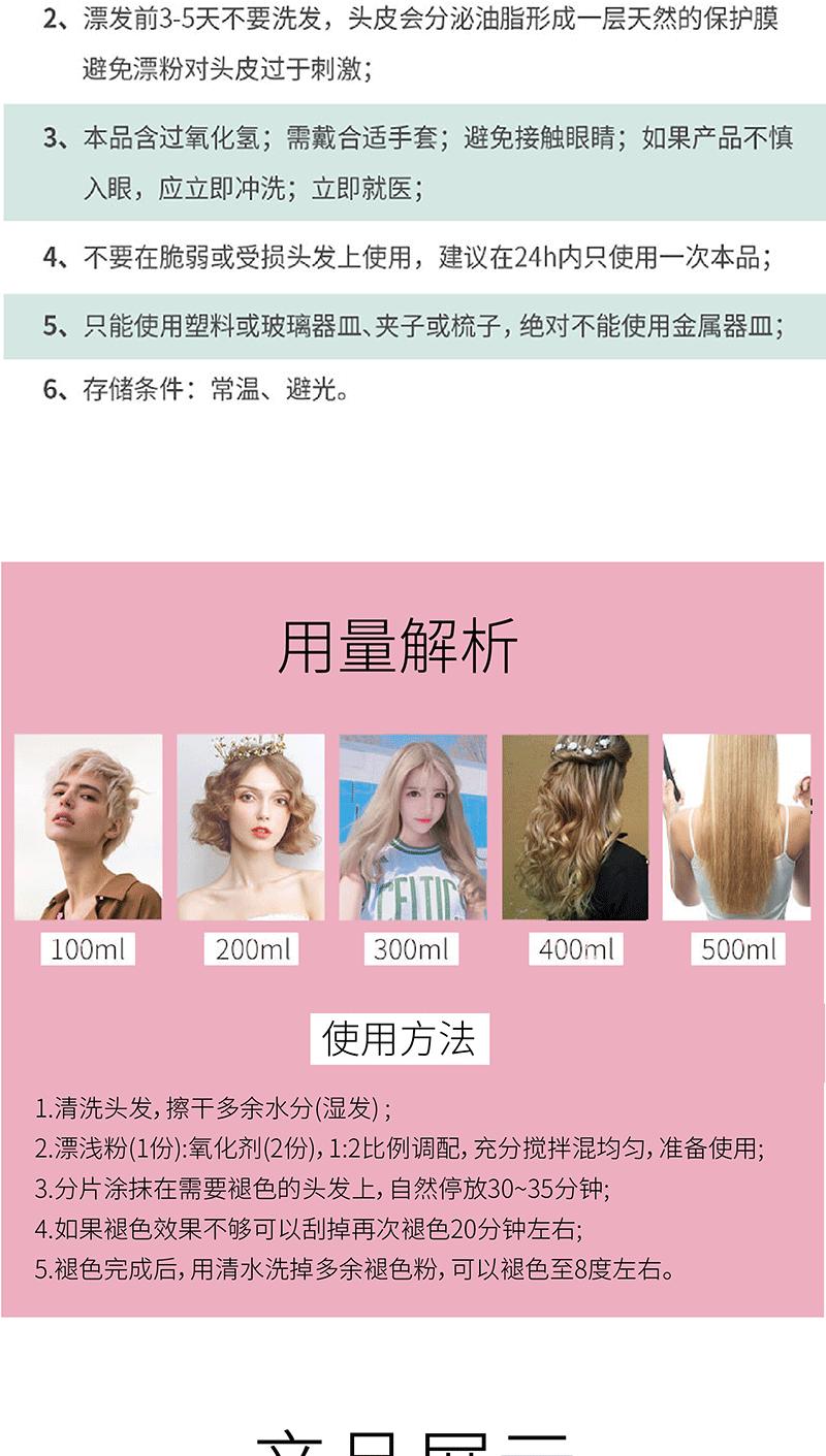 Paquete Pequeño de 50g 100g Polvo Decolorante para Barberías, Venta al por Mayor de Polvo Decolorante para Comercio Electrónico, Sin Amoníaco, Tinte para el Cabello No Dañino, Color Sólido