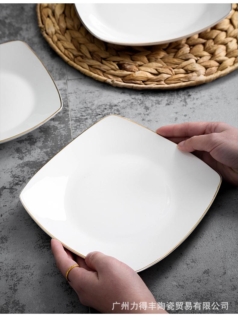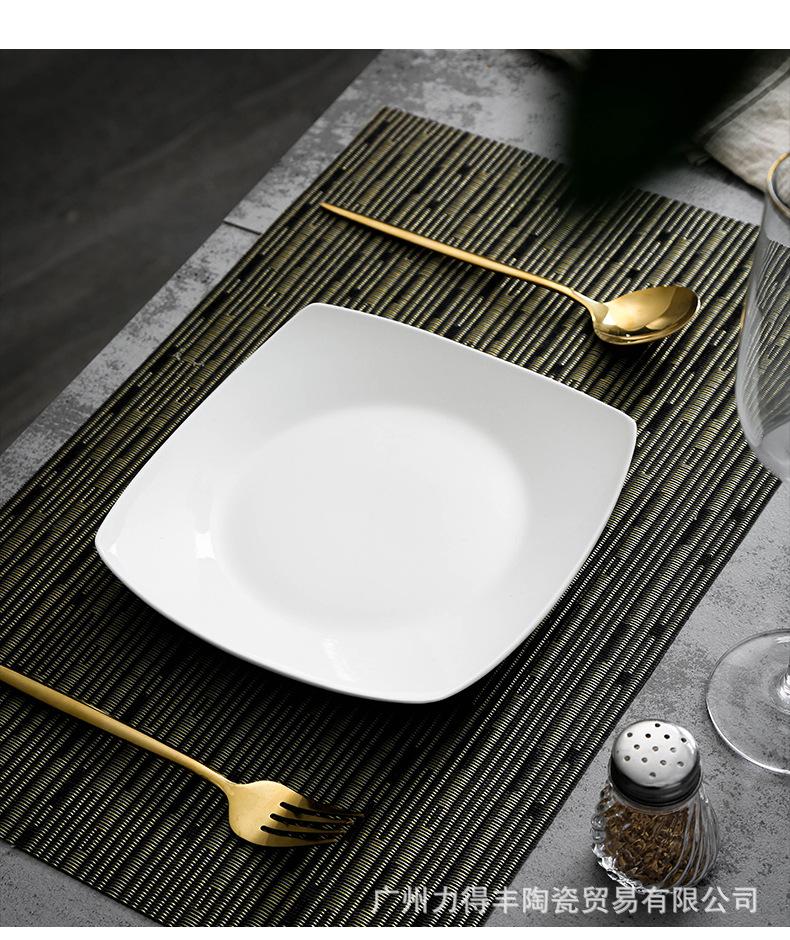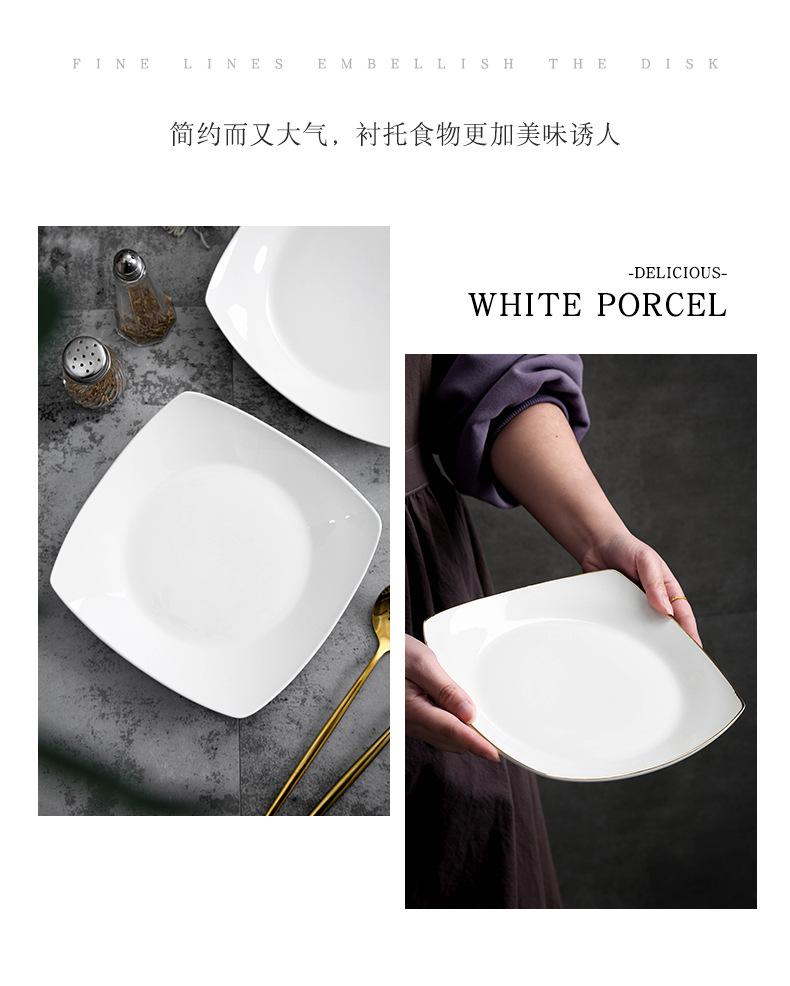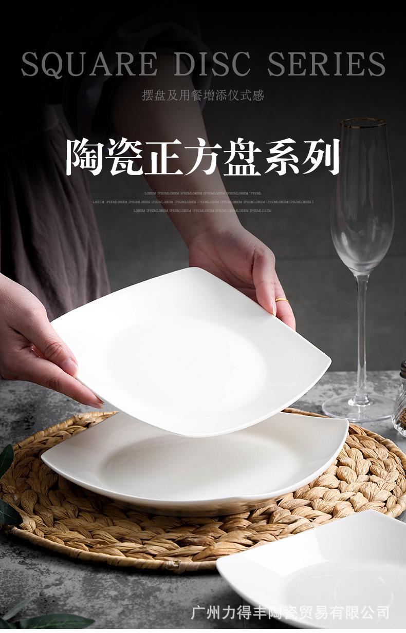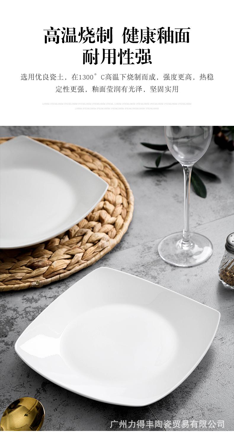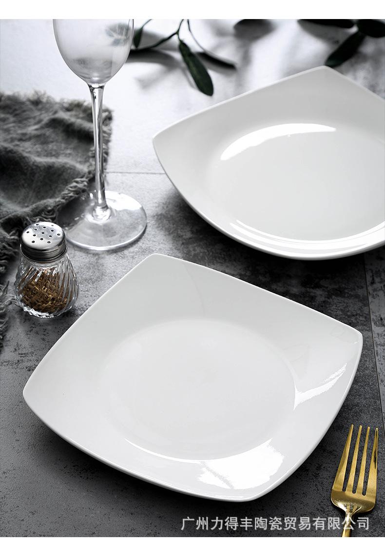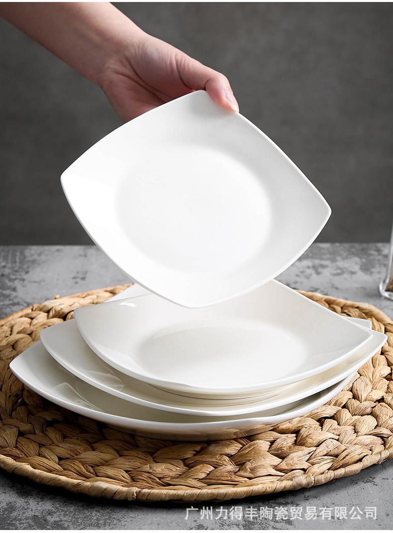 Plato de cerámica blanca pura, vajilla creativa de cerámica para el hogar, plato cuadrado de cuatro esquinas, plato cuadrado, plato cuadrado para sopa