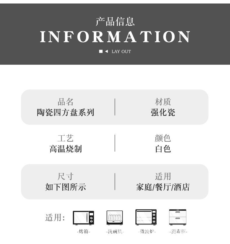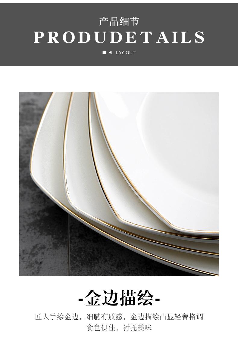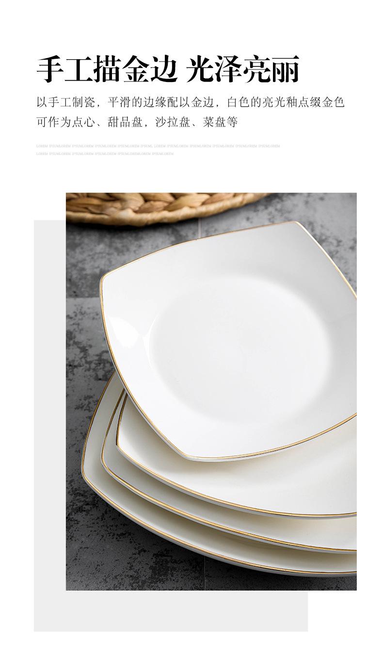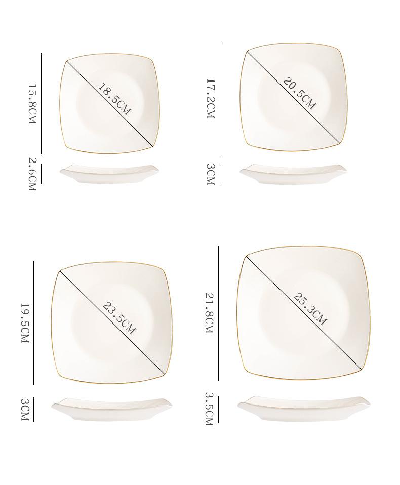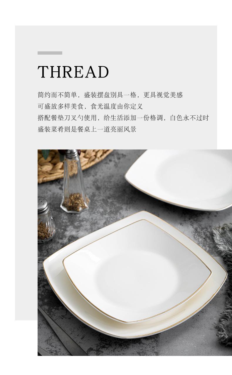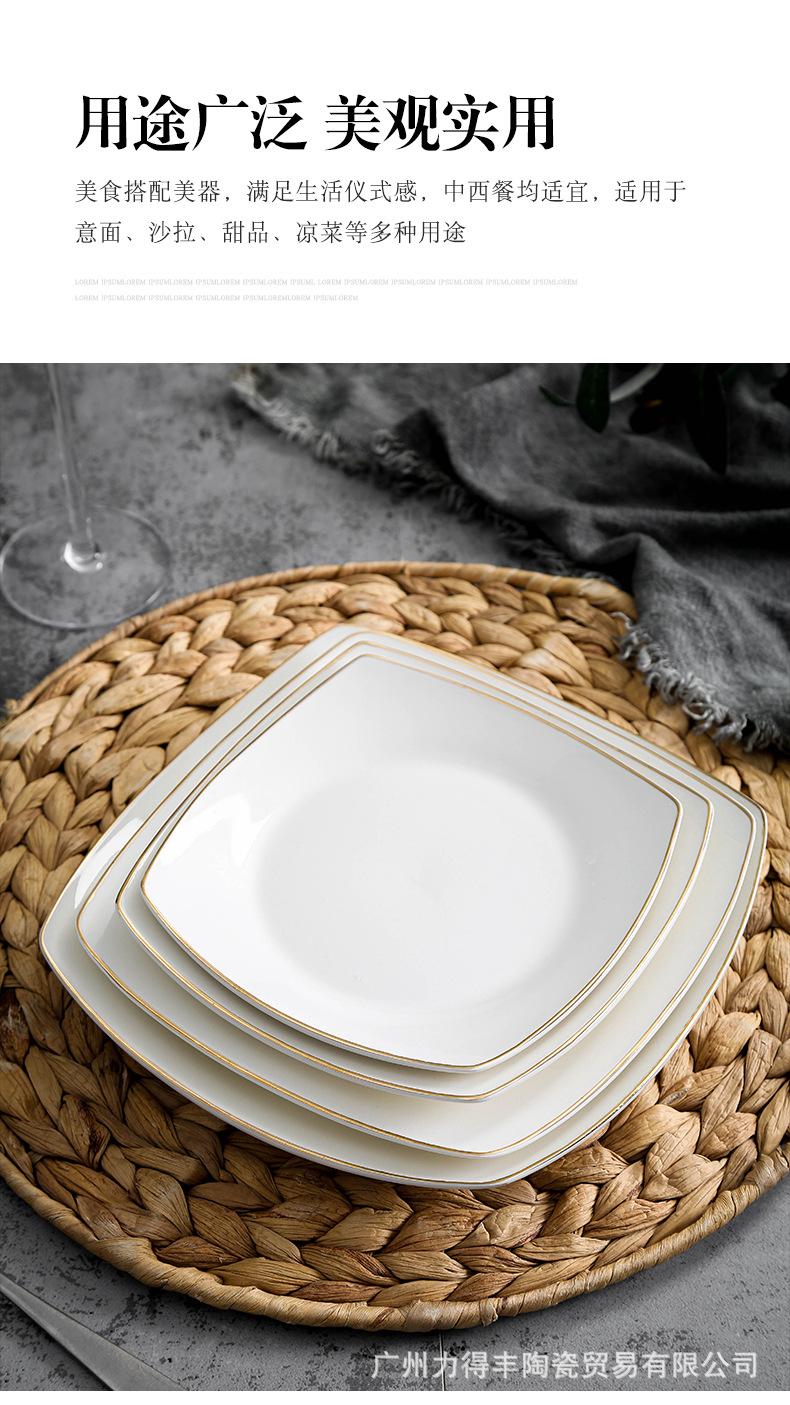 Plato de cerámica blanca pura, vajilla creativa de cerámica para el hogar, plato cuadrado de cuatro esquinas, plato cuadrado, plato cuadrado para sopa
