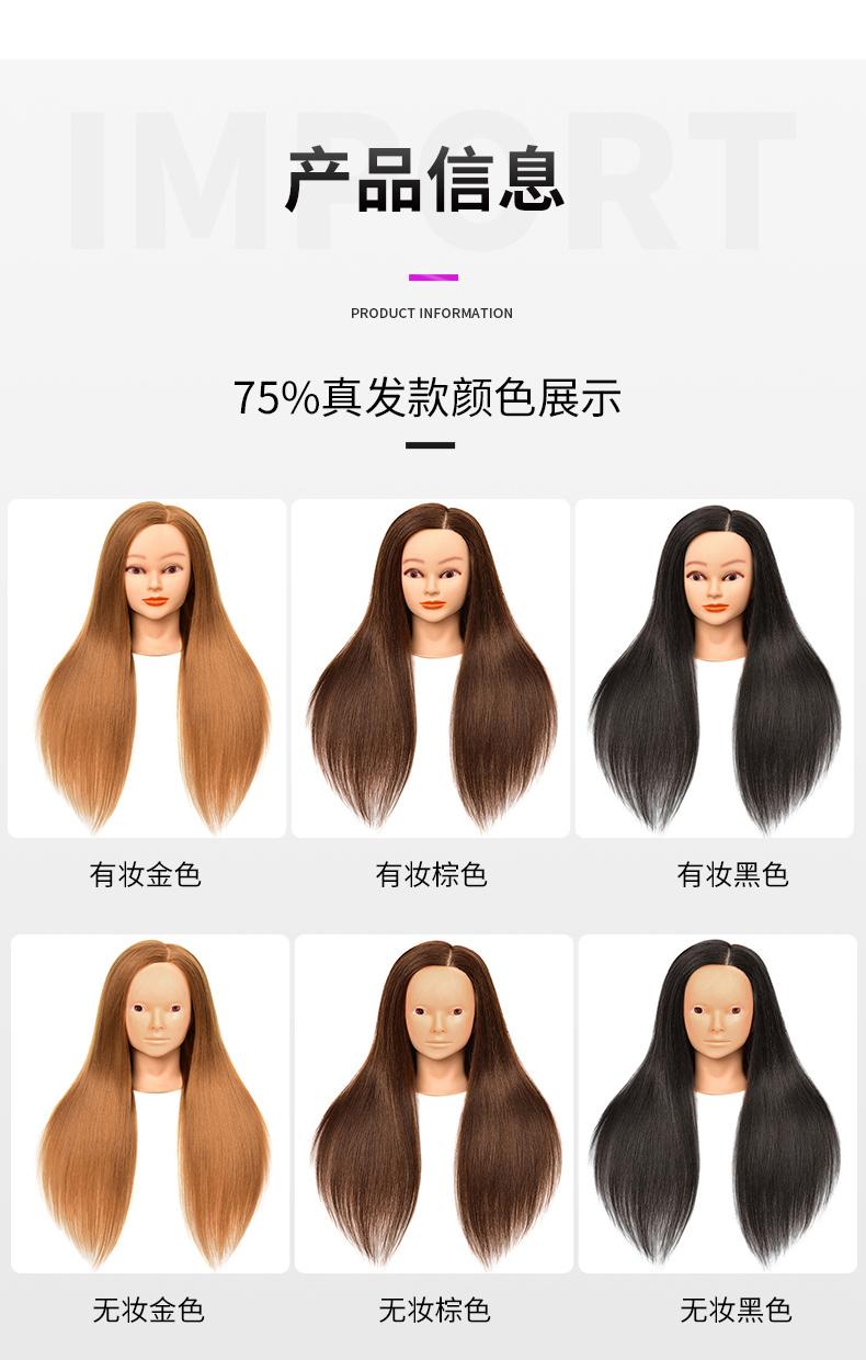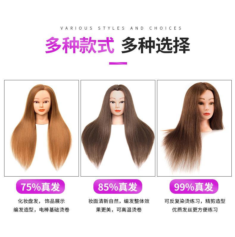 Modelo de Cabeza de Peluquería, Aprendiz de Peluquería, Modelo de Cabeza de Maniquí para Práctica de Corte de Cabello, Cabello Real Completo, Se Puede Permanecer y Teñir, Cabello Trenzado, Modelo de Muñeca Camino