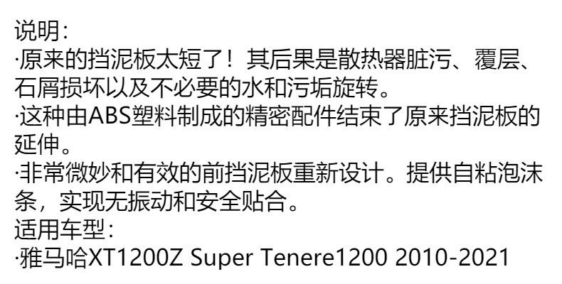 Adecuado para extensión de guardabarros delantero de motocicleta Yamaha XT1200Z Super Tenere