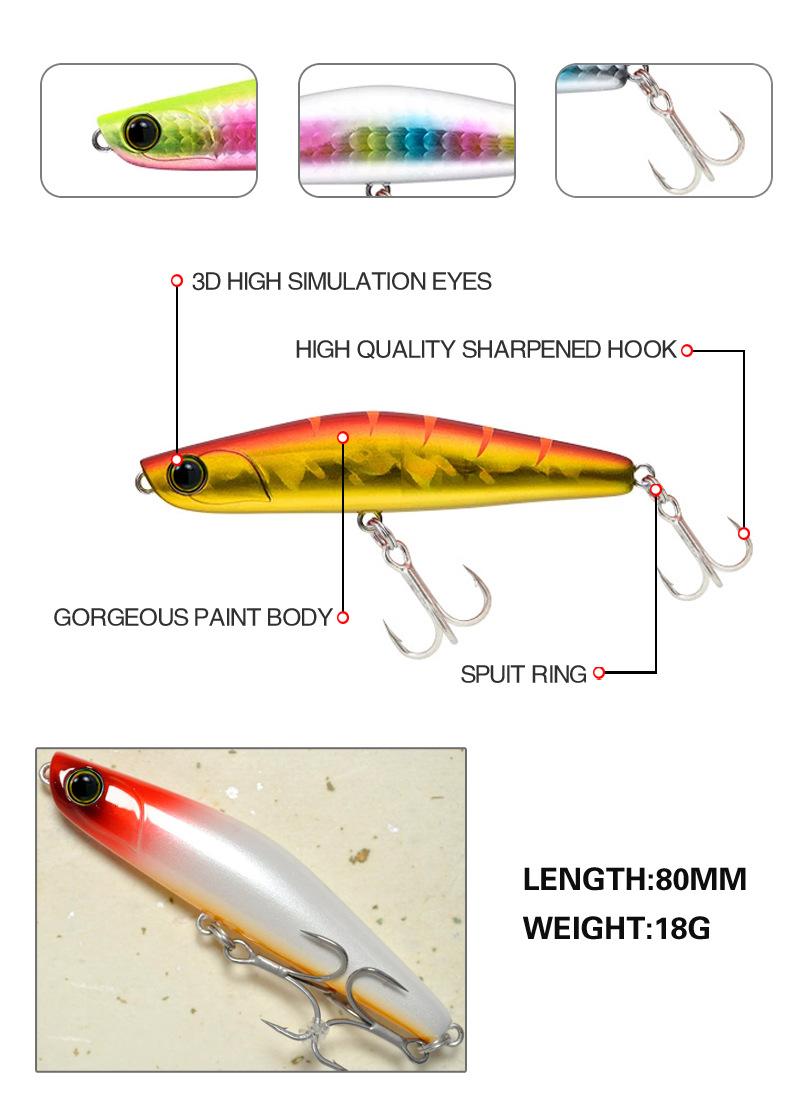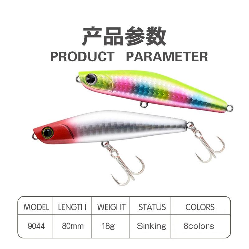 Señuelo Cebo Cebo Falso Señuelo Lápiz Sumergible 80Mm/18G Cebo Duro de Largo Alcance Cebo para Lubina de Boca Inclinada Equipo de Pesca 9044